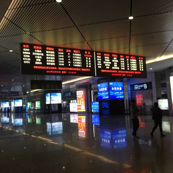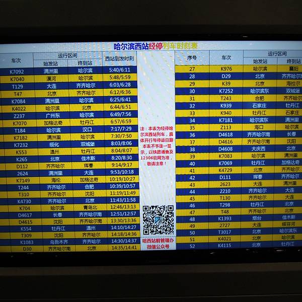 说说我这次和哈尔滨西站结缘的2次感受。5月九日到达哈尔滨西站,上几张出站的的图候车室在正中央,进站从这里进去,站前广场非常的开阔,候车室的右边是自动售票车,取票在这里。进到站里候车,候车室非常的敞亮,天棚很漂亮:造型不错,我在候车时偶遇哈西站的女乘务员在表演时尚快闪节目,在开车前10:00准时开始,我看到了序幕,音乐响起的时候,我们的车检票了,给大家上个图:哈尔滨西站站内设施非常的完善,一楼大厅的四个角都是卫生间,不过男卫生间没有手纸提供,这点挺差劲,没有自备手纸的的朋友,赶上内急的话,后果,你们会懂得。可以乘坐电梯上二楼,有很多超市,快餐连锁,解决吃饭问题,有个俄罗斯商品超市,买很多俄罗斯的产品,性价比还不错,2014年的时候我曾经在这里买过一个不锈钢的魔术折叠杯,挺实用的。出门带很方便。
