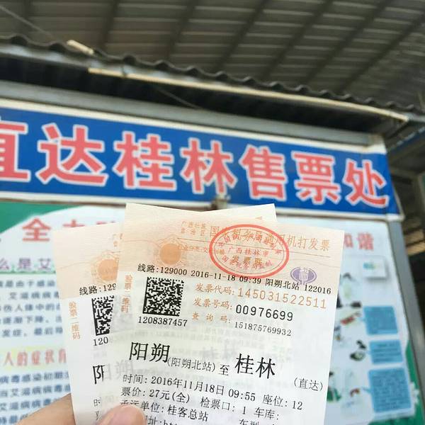 阳朔县城内的公交车是一种旅游观光电瓶车,县城内的票价都为1元,电瓶车是随叫随停的。