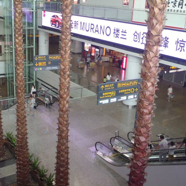 出发大厅门口。很方便客人的手推车。哪些航空公司在哪办登机手续,很人性化的指引。机场附近的天空还是很蓝的,空气质量还好!航站楼指示图很清晰。到的时候是下午,办理登机的人不是很多,因此不喧哗。机场的风...出发大厅门口。很方便客人的手推车。哪些航空公司在哪办登机手续,很人性化的指引。机场附近的天空还是很蓝的,空气质量还好!航站楼指示图很清晰。到的时候是下午,办理登机的人不是很多,因此不喧哗。机场的风景树,个人蛮喜欢的一种。出发大厅下一层有很多商店可以购物,吃东西的餐馆,但比较贵的物价。很喜欢的幕墙设计和顶棚。整个出发大厅还是比较干净的。一楼到达大厅的大巴。机场的地下铁车站,目前开通的站是机场南站。通往机场的道路。绿化很好,但车流量还是比较大的。
