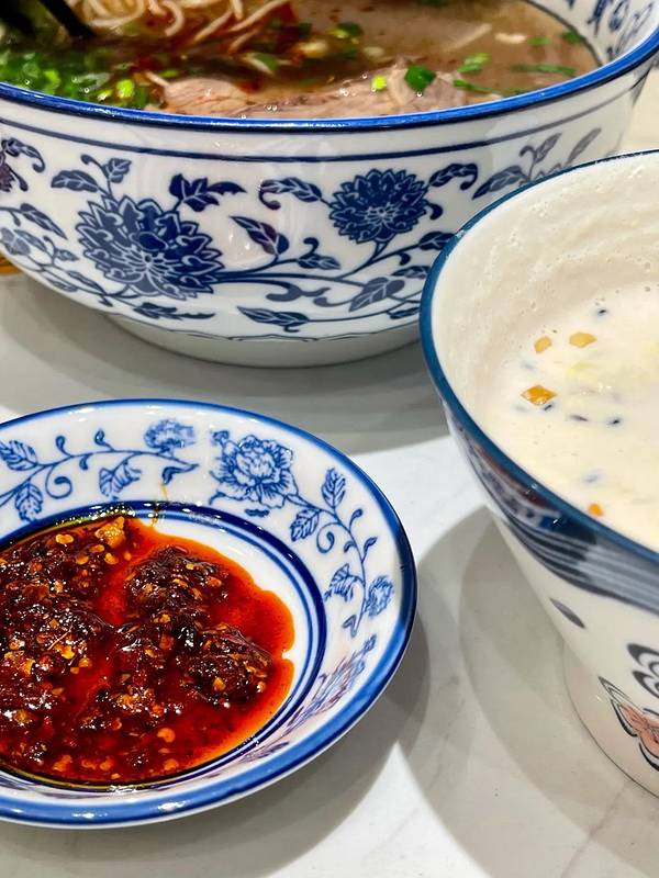 牛奶醪糟真得很好吃,奶味浓郁、配料也多;牛肉拉面味道也不错,面汤算鲜美,就是牛肉少了点。