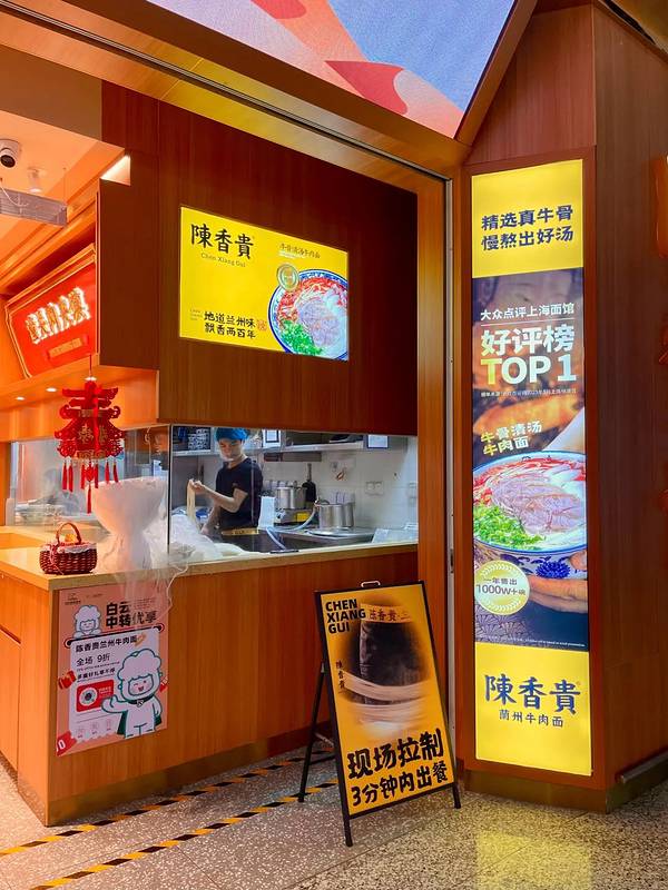渐入夏季的白云机场好热呀,明显空调不足;又热又饿来了这里的陈香贵,这里比有些只卖套餐的机场餐厅好一些的是可以单点,点了一碗牛肉清汤拉面和一碗牛奶醪糟。