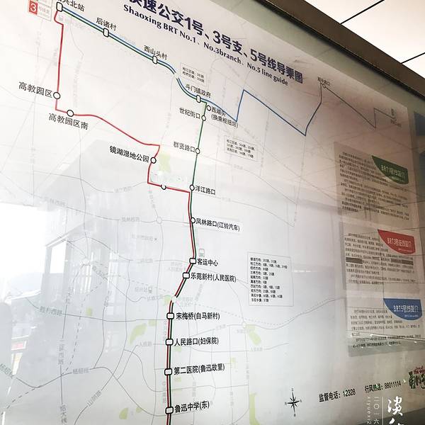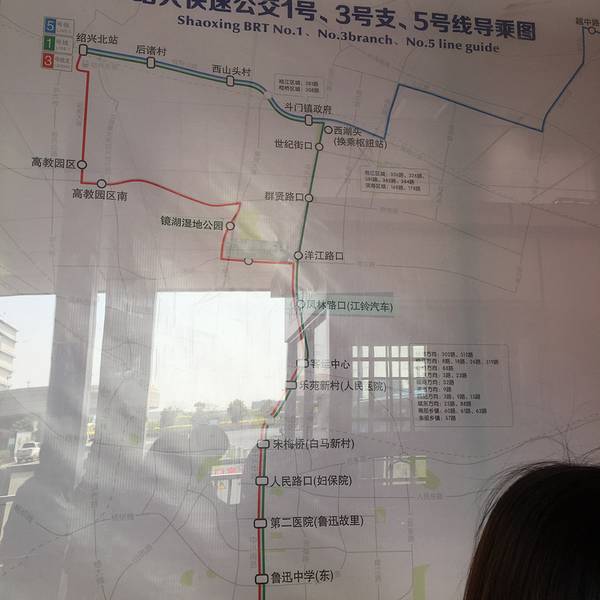 - 因提前做了路线查询,从绍兴北到市区可以乘坐快速公交线BRT1号,出站后很快上了公交驶向市区