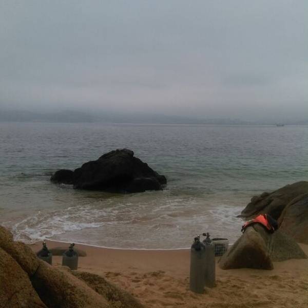 对面的岸上已经开始新建大酒店了,这么偏僻安静的地方肯定能吸引不少人前来,过些年大概就没有这么舒服的海面了。装备早就在我们到达之前就运过来了全体到达之后,活动马上就展开,换好衣服就开始授课。初级的潜水其实是很简单的事情,比游泳要简单太多了,装备教练都会帮你装好,下潜上浮也全都是教练一手包办的,没有任何需要操心的事情。只要学会简单的手势以及不用鼻子只用嘴巴呼吸就好了,另外的一个要点就是为了应对耳朵可能会痛,有时需要在水下鼓气和吞咽。