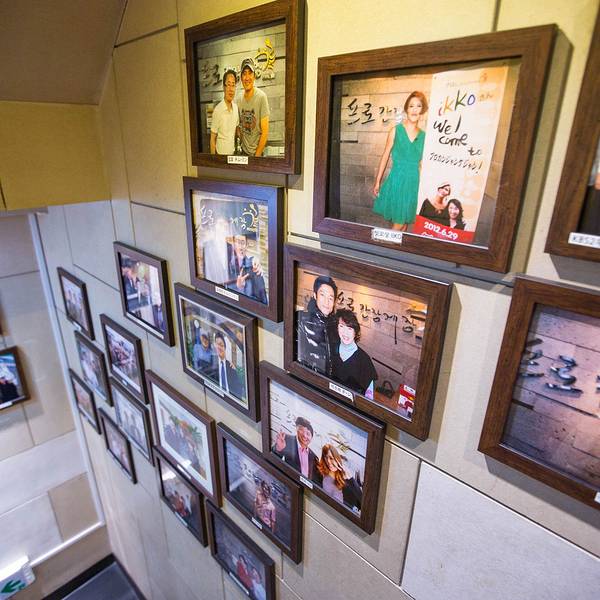 - 这家店最好的就是24小时营业,买东西到很晚也可以来吃,就是价格贵,店里面有一面墙都是老板和明星的合影