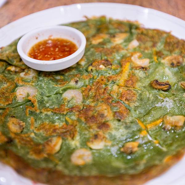 - 好吃!狭窄的楼梯上面挂满了各路明星来这里吃饭的照片。特意给贝壳儿点了一份海鲜小饼,味道还不错