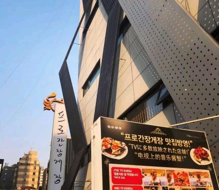 门牌很明显,走到拐角一目了然!进门地方不大,装修普通,但明星墙却十分抢眼!看了下菜单,东西很简单,种类很少,但价格都不低!因为一早就想好要请朋友来首尔时吃顿饭,所以没财迷,点了最大的母蟹,一份炒活...门牌很明显,走到拐角一目了然!进门地方不大,装修普通,但明星墙却十分抢眼!看了下菜单,东西很简单,种类很少,但价格都不低!因为一早就想好要请朋友来首尔时吃顿饭,所以没财迷,点了最大的母蟹,一份炒活鱿鱼,两碗蟹子拌饭,米酒一份……总消费18万七千韩币。(哎呦我的小心脏)这也怪我比较土老帽,吃酱蟹还点什么蟹子拌饭吗?吃生蟹应该点烧酒才对啊,最后再用热热的白米饭配上蟹壳里满满的蟹子,拌上点赠送的海苔,那才是最佳搭配嘛!我们当时的搭配就好像吃饺子就着炒菜,咸到起飞…白白浪费了银子不说,还把自己齁个半死!以上吃法是我自己总结的,“正宗”与否不知道,但我个人觉得应该是比较合理的。吃东西无需墨守成规,吃着舒服,适合自己的口味才最重要!我们来自沿海城市,吃螃蟹这种东西我一贯坚持越大性价比越高的理论,这次的两只蟹虽然贵点,但不得不说质量很高,够鲜,够肥…没一点腥味儿,肉质细腻有弹性,满满的蟹子!至于好不好吃,看各自的喜好,因人而论!口感与“醉蟹”还是差距很大滴,一是蟹的品种不一样,再就是主要调料也不同!醉蟹黄酒味儿占主导,酱蟹貌似是酱油吧,主打“咸鲜”!