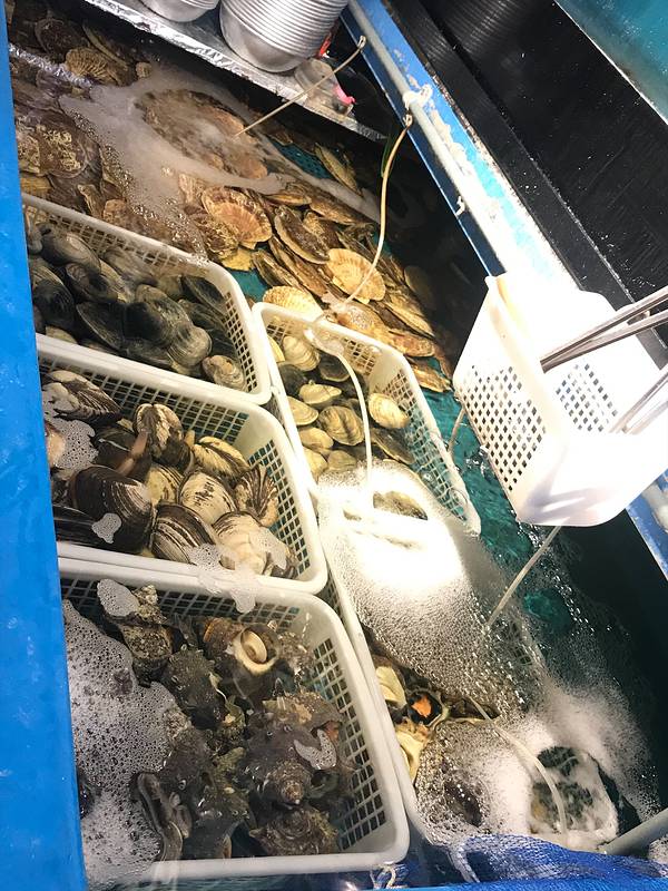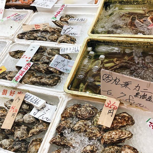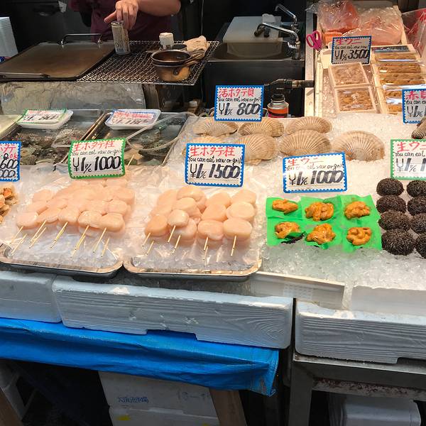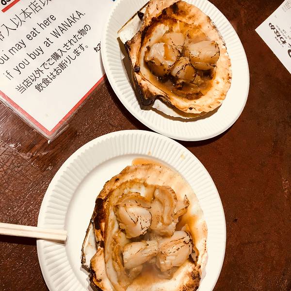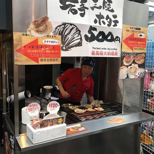 - 把一颗贝柱片成了四片,影响了口感,鲜甜味也流失了。前文提到的日本三大食堂,来到大阪,自然要来黑门市场