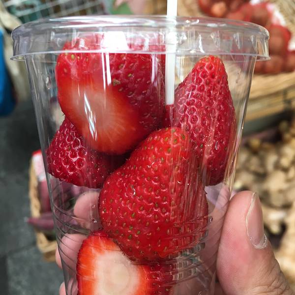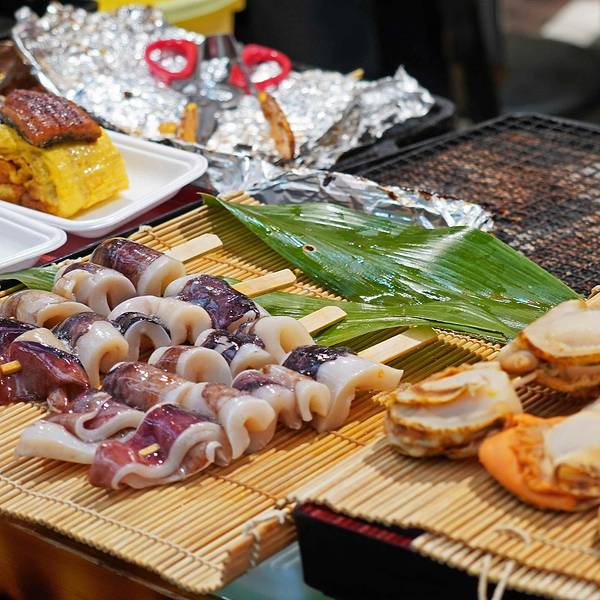 - 烤虾非常好吃,还点了鳗鱼。烤扇贝是真心好吃。去附近的黑门市场逛逛。终于看到了水果
