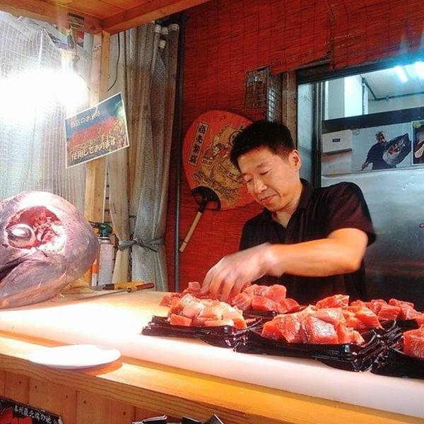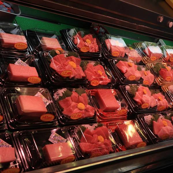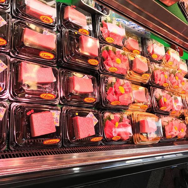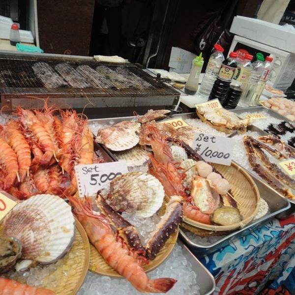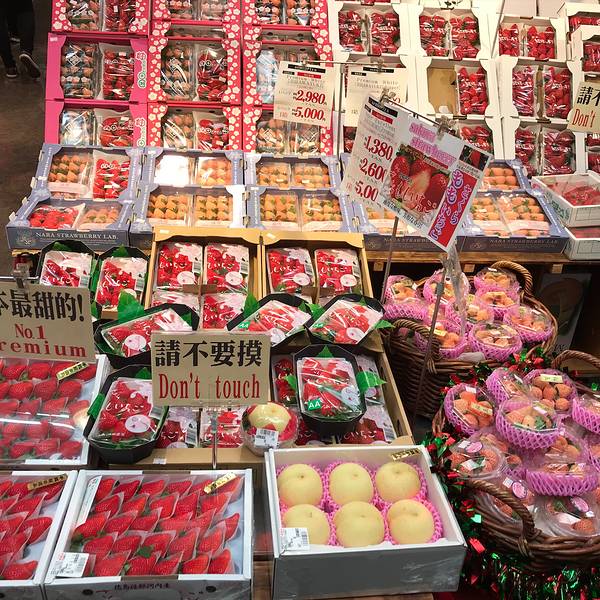 这个地方就是吃货的天堂呀,按我男票的说法就是……我们后面几天都在这逛都行,哈哈哈。新鲜的海胆一定要尝尝,选好后直接给你敲开,调料我们个人认为加一点点酱油就ok,记住是一点点,千万不要多,海胆好吃到爆...这个地方就是吃货的天堂呀,按我男票的说法就是……我们后面几天都在这逛都行,哈哈哈。新鲜的海胆一定要尝尝,选好后直接给你敲开,调料我们个人认为加一点点酱油就ok,记住是一点点,千万不要多,海胆好吃到爆!!!我们选了2400yen的,后来后悔应该豪一把直接来一个4500yen哒!!!还有各种生鲜,吃吃吃!河豚也可以一试哟˜˜有刺身也有火锅,稍微小贵咯˜看到现切的金枪鱼刺身,1000yen一大盘,好大一块!然后就是吃各种和牛啦˜˜我们吃了1200yen/100g的国产黑毛和牛,现场烤了,也没加佐料,直接吃,umaaaaa,口感好像雪糕!嗯,三块肉我们就用了快200RMB˜˜有大个的白色草莓也要试试哟,味道真的不错哟˜哈哈,也不便宜就是了。