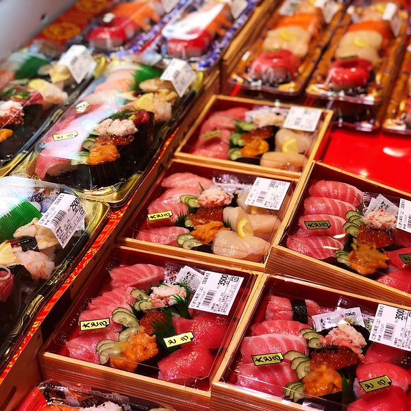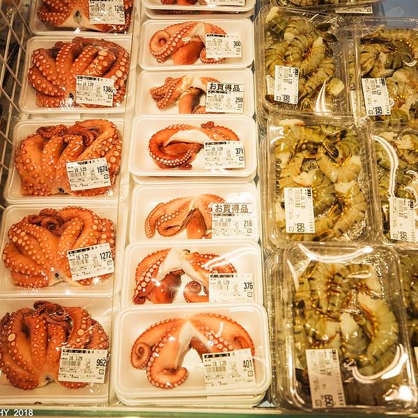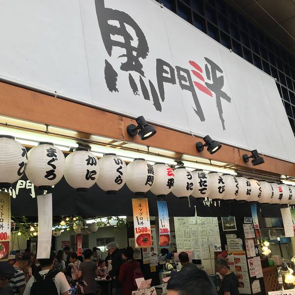 我们选了黑门三平的刺身吃吃看。刺身拼盘里有甜虾、鯖鱼、金枪鱼中腹、三文鱼、扇贝...前文提到的日本三大食堂,来到大阪,自然要来黑门市场。食材和锦市场没什么差别,但是门脸儿的风格就很大阪,色彩要鲜明很多。