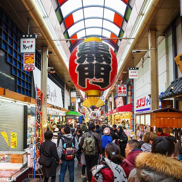 在明治末期以前,黑门市场曾被称作“圆名寺市场”。因为那里附近曾有一座叫圆名寺的大寺庙,便由此得名。而这座寺庙的东北边的黑色大门又在当时特别出名,渐渐的“圆名寺市场”便成了现在的“黑门市场”。这里又被当地人称为“大阪的厨房”,意思是只要与吃有关的东西,都可以在这里找到。在这个近600米长的市场里总共有170家店铺,主要经营新鲜和高品质的肉、蛋禽类和蔬菜水果以及海鲜等生鲜食品。另外,市场还专卖一些其他地方买不到世界各地的调味品及烹饪佐料。仅管半数以上的销售是针对饮食业主(专业的厨师),但是黑门市场同样也满足着普通大众的需要。170多年来,从饭店厨师到家庭主妇,每个来黑门市场的人都可以根据自己的口味、选择各类生鲜食品。来这里逛一逛,您一定会对大坂普通老百姓的“菜篮子”有所了解。