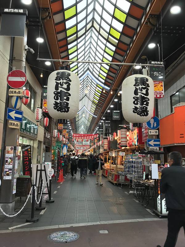 黑门市场被称为大阪人的厨房,从江户时代开始经营的传统市场。终于看到了水果烤扇贝是真心好吃烤虾非常好吃,还点了鳗鱼