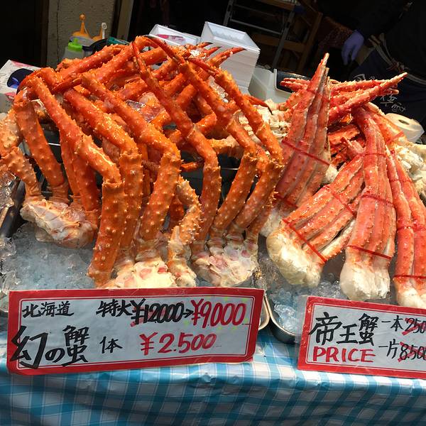 各种小吃~国人偏多日本的水果真心贵的离谱~一个桃子这么贵!难道他们都不吃水果嘛和牛价格都是论克卖的~一定要看好啊!帝王蟹腿~多么诱人啊!姑娘一脸嫌弃!哈哈肉质很实~特别鲜~价格不低12000日元~约八百...各种小吃~国人偏多日本的水果真心贵的离谱~一个桃子这么贵!难道他们都不吃水果嘛和牛价格都是论克卖的~一定要看好啊!帝王蟹腿~多么诱人啊!姑娘一脸嫌弃!哈哈肉质很实~特别鲜~价格不低12000日元~约八百多RMB这就是真正的蟹柳😏新鲜的金枪鱼~3500日元特级和牛200g/7000日元 约合四百大多RMB餐后遛遛弯~遇到了号称世界第二好吃的泡芙~名不虚传👍确实好吃~400日元酸奶~要尝尝~不过日本的牛奶真的很好喝~~
