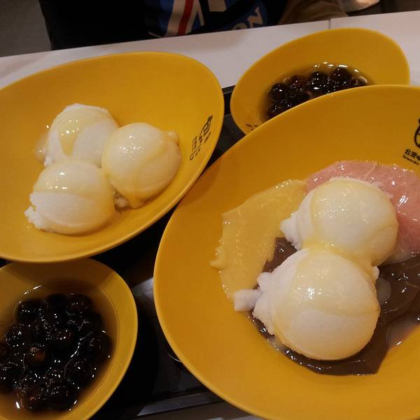 去台湾出差多次的同事强烈推荐的甜品店,黑色的粉圆里面包着红豆,温热的粉圆配上雪糕和冰冻的布丁,口感的确很特别。但由于我本来就不喜欢吃红豆,所以对这款甜品不是特别喜欢。 地址:台北市万华区桂林路1号1楼(争鲜回转寿司、麦当劳隔壁)