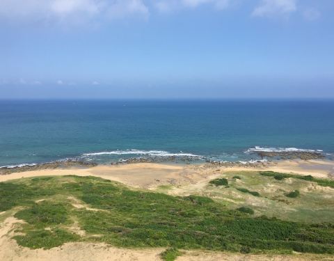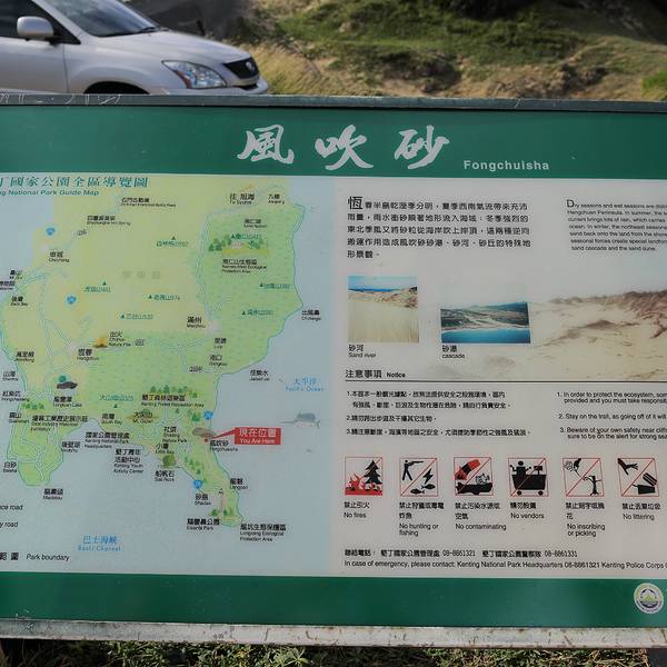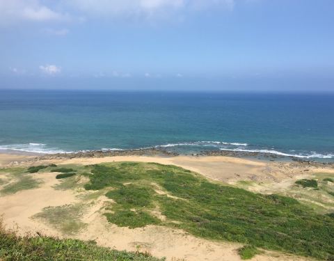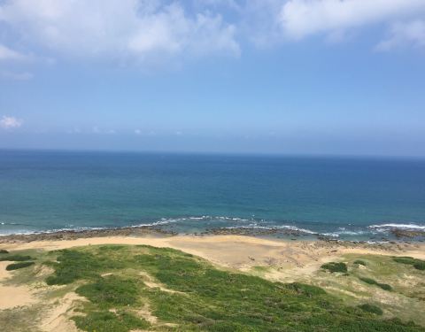 参观完贝壳公园后,本来是叫出租车司机送我去垦丁大街参观完贝壳公园后,本来是叫出租车司机送我去垦丁大街。走到一半,司机大哥说带我去看风吹沙,结果走回头去岛的另一边。虽然没看到满地沙,但可以看到无敌海景,前面是太平洋,欣赏到海天一色的景象。
