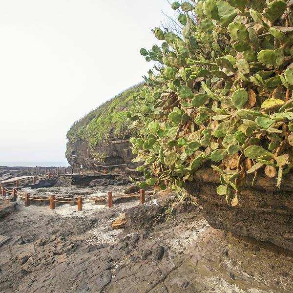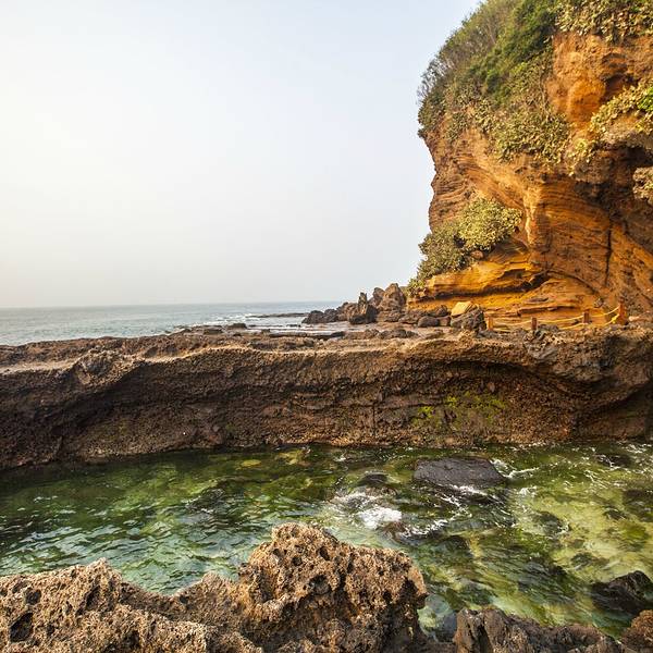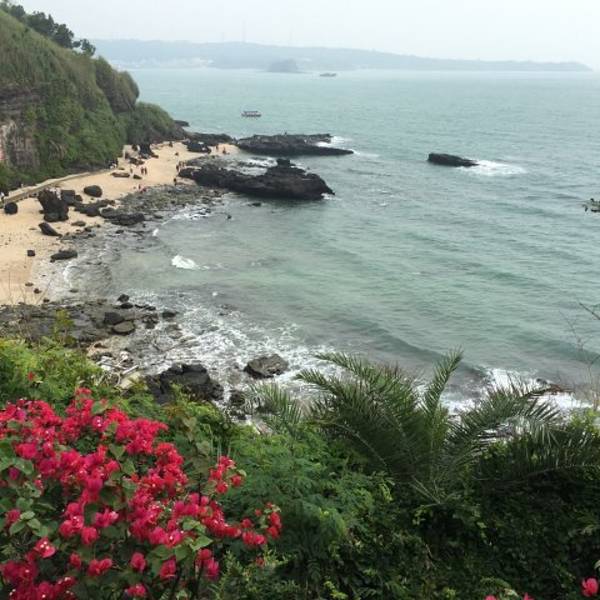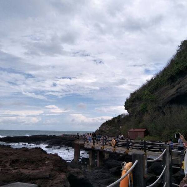 如果是坐摆渡车过来,进入公园景区,迎面就能看到一座洁白的灯塔,灯塔主要功能就是给过往船舶指明方向。白色塔身红色塔顶,周围郁郁葱葱的树木,色彩反差明显。这里还有一个鳄鱼山国家地质公园博物馆,博物馆内珍藏多种火山岩、珊瑚、海洋生物标本,所有标本都注有详细说明,是科普了解这座火山公园很有价值的地方。山上的植被非常好,到处郁郁葱葱,美不胜收!在观景平台上可以欣赏海滨全景,吹着海风,欣赏着来来往往的各色船只,很意境。沿着小路往下可以一直走到海边,海滨有修建的木头栈道,可以欣赏各式各样的火山海蚀景观,不同于常见的沙滩的细腻,也不同于贝壳沙滩的梦幻,大片火山岩在眼前弥漫,呈现出独特的风景。沿着海边的木栈道一直往前走,可以欣赏到主要景点。灯塔、汤翁台、火山口遗址、龙宫探奇、藏龟洞、贼佬洞、百兽闹海、海蚀拱桥、月亮湾、珊瑚沉积岩、海枯石烂等,都是值得欣赏的景点。如果是退潮时间,从这里可以一直走到滴水丹屏景区的,大约1公里的样子。据说景色很好,能发现珊瑚和海葵,还没有太多游客打扰,这是当地人主推的景点玩法,但是事先必须咨询好潮汐时间,以免造成危险。实用贴士: