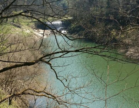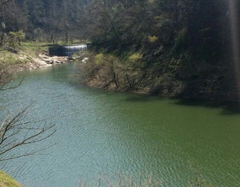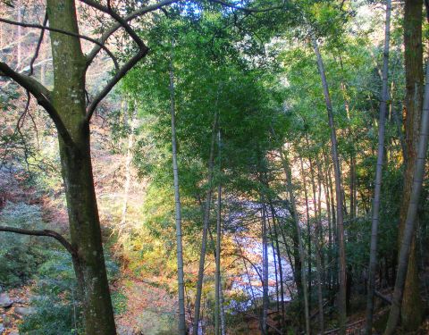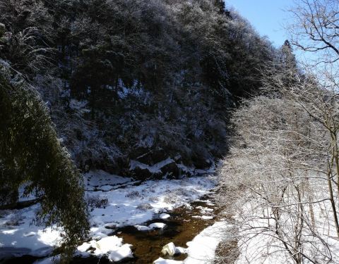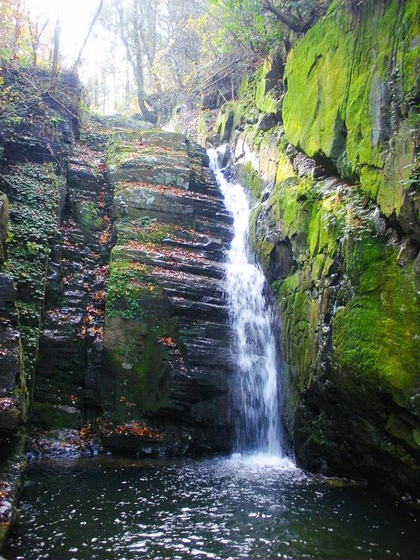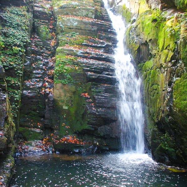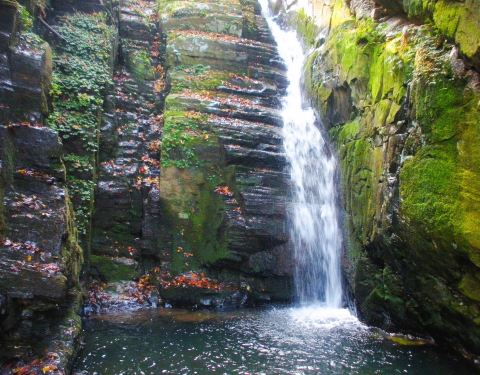 位于幽深、静谧的峡谷间,是瀑布冲击成暗绿色的深潭,以秀、幽见长。