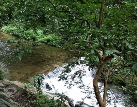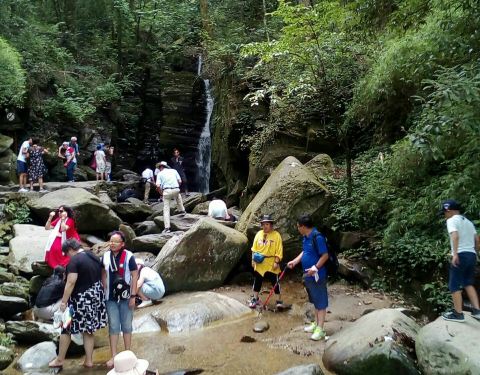 溪流瀑布掩映在丛林之中,清新的空气,凉爽的林荫,是一个休闲度假的好地方