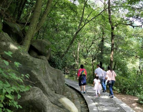 但个人觉得真心不要抱太大的期望值,因为它真的只是一潭流动的碧水,也不能把它和一般瀑布等量齐观,...黄龙潭在庐山三宝树景点下方到庐山电站大坝的路上,瀑布不大,但是有种“明月松间照,清泉石上流”的感觉,青苔遍布,把小涧打扮得一片绿色,衬托着飞流而下的瀑布。据说这黄龙潭是转运潭。用潭水洗手可以洗去霉运...黄龙潭在庐山三宝树景点下方到庐山电站大坝的路上,瀑布不大,但是有种“明月松间照,清泉石上流”的感觉,青苔遍布,把小涧打扮得一片绿色,衬托着飞流而下的瀑布。据说这黄龙潭是转运潭。用潭水洗手可以洗去霉运。反正我是洗了的,潭水太清凉了。黄龙潭不远处就是乌龙潭,由3个大小不一的潭渊组成,潭水分5股从巨石隙缝中飞扬而下,短而有力,像是一把银锻的竖琴,日夜拨动着琴弦。 虽然黄龙潭乌龙潭是庐山大门票背后列出的景点,但个人觉得真心不要抱太大的期望值,因为它真的只是一潭流动的碧水,也不能把它和一般瀑布等量齐观,规模小到只能以轻柔纤细来形容,但景点格外幽静和清凉。在庐山玩个3天左右都可以去下,反正是包含在大门票的景点。距牯岭较远,观光车没有直达站点,可坐观光车东线到芦林停车场站,下车后沿到黄龙潭和乌龙潭的指示牌走,不久就能到黄龙寺、三宝树,再往前走依次是黄龙潭和乌龙潭,这几个景点走完这条路也就没其他可看的景点了,但不用走回头路,继续前行20分钟能到电站大坝,此为庐山西线观光车的终点站,可从这坐车回牯岭和到西线其他景点,比从原路回芦林停车场站省时省力多了。 展开