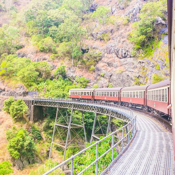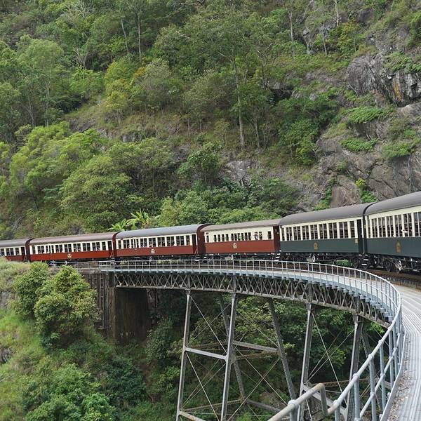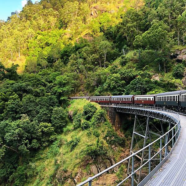 实用 好像是早上和下午各一班,火车是别具传统的老式火车,很特别,一路的风景也很美,中间有站可以下车活动一下从凯恩斯向北经Cook Highway,沿着一条幽静的、美丽的、穿越雨林而建的盘山公路行进30分钟,就到了库兰达,这是一个被热带雨林环抱的小镇。可以通过两种方式到达,一个是火车,另一个就是长达7.5公里的缆车了。所...从凯恩斯向北经Cook Highway,沿着一条幽静的、美丽的、穿越雨林而建的盘山公路行进30分钟,就到了库兰达,这是一个被热带雨林环抱的小镇。可以通过两种方式到达,一个是火车,另一个就是长达7.5公里的缆车了。所以这里建议大家可以来回各选择一种方式,这样两种不一样的交通旅行方式都可以体验到。火车的话,直接在凯恩斯火车站购票前往即可(建议预定),但是需要关注一下时间,好像是早上和下午各一班,火车是别具传统的老式火车,很特别,一路的风景也很美,中间有站可以下车活动一下。缆车的话最好也要预定(费用50刀单程),据说修建缆车为了不破坏热带雨林,所有的材料都是直升飞机运送的,中间也有两个站可以下车观赏风景。缆车(史密斯菲尔德站)和火车(清水火车站)距离约7公里。火车一天四班,早上两班(8:50和9:50),下午两班。这个热带雨林最早可追溯到1.2亿年以前,是地球上最古老并存续至今的热带雨林,目前依旧保持有90万公顷的面积!库兰达镇同时也是购物者的天堂。 这有很多手工艺品,如花布,瓷器,及代表土族文化特色的装饰品,还有精美的澳宝-蛋白石。交通:自驾车游览库兰达很方便,如果自驾半天足够了,风景还是很不错的,库兰达是个很舒服的小镇。你可以直接在凯恩斯机场租车并提车,如果是小车,一天才40几澳刀。 展开