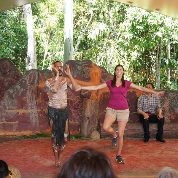 金骆驼 来到凯恩斯游玩,一定要去库兰达热带雨林游玩,原生态的自然美景会有一种与众不同的体验来到凯恩斯游玩,一定要去库兰达热带雨林游玩,原生态的自然美景会有一种与众不同的体验。达到库兰达后,可以乘坐水路两用车,行程大约45分钟,在原始森林内的河道上巡游,很有探险的乐趣,时不时还可以看到小鳄... 来到凯恩斯游玩,一定要去库兰达热带雨林游玩,原生态的自然美景会有一种与众不同的体验。达到库兰达后,可以乘坐水路两用车,行程大约45分钟,在原始森林内的河道上巡游,很有探险的乐趣,时不时还可以看到小鳄鱼,非常刺激,这个船是逢整点出发的,要规划好时间。返回之后,推荐当地特色的烧烤牛排BBQ自助餐,虽然可能略有点吃不惯,不过当地的调味料确实很好吃。另一个很有地方特色的就是土著文化公园,最精彩的莫过于土著表演投掷回旋镖了,非常帅气。这个是有时间的,中午12点、1点、2点各有一场表演,看完演出后可以与考拉和袋鼠来个亲密接触和拍照。TIPS: 如果不是自驾游的话,建议选择乘坐库兰达观光列车前往,每天早上8点半与9点半各有一班从凯恩斯出发,下午2点半和3点半各有一班从库兰达返回,目前单程票48澳元,往返票72澳元,其特点是可以穿梭于雄伟的山脉和原生态的隧道,随后从空中俯览整个热带雨林的美丽风景,全程大约是1个半小时。 展开