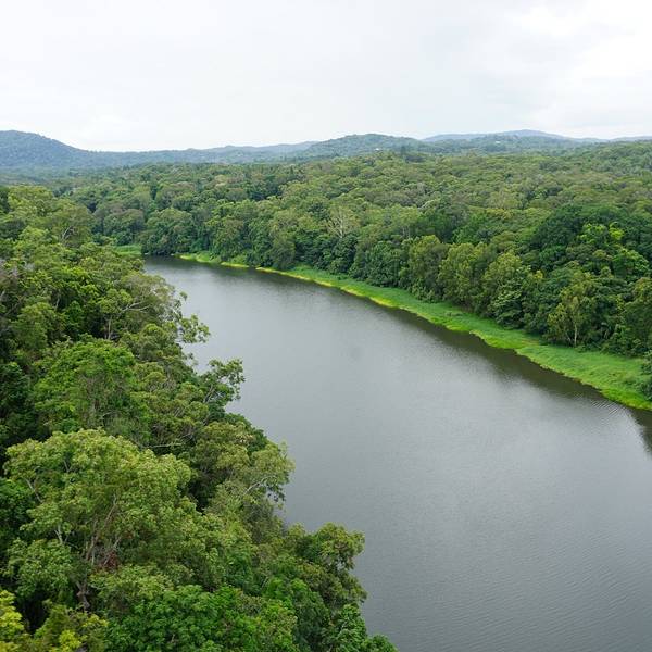 库兰达是凯恩斯附近的一个小镇,因为距离凯恩斯非常近,也就成为了一日游的选择。19世纪,曾是上层社会人士的避暑胜地,现在每天依然有大量的游客乘坐火车或者空中缆车来到这里。1.景点概述:库兰达雨林小镇虽小,却地处风景极其优美的热带雨林之中。其间那高耸的百年古树,直泻的瀑布,涓涓的小溪流水,珍奇的野生动物,以及道路两旁那随处散发着郁郁清香的各色小花,无不给库兰达勾勒出一幅世外桃源般的美景。2.库兰达热带雨林公园:距离库兰达雨林小镇约5分钟车程,位于高速公路上。公园提供三种游玩方式:乘坐独有的两栖水路两用军车穿梭热带雨林和热带水果园;欣赏帕玛吉丽土著民族舞蹈表演,观赏如何抛掷回力镖和射箭、如何吹奏迪吉里杜管;以及观赏考拉、袋鼠、袋熊和有“恶魔杰克”之称的凶残鳄鱼。3.蝴蝶屋热带雨林公园门口每天都有接驳巴士开往不远处的蝴蝶屋,蝴蝶屋位于小镇中心的8RobVeiversDrive路上,里面生活了1500多种蝴蝶,你可以在内部孵化实验室里看一看蝴蝶的幼虫是如何随着环境的变化而生长,等到这些幼虫长大,就可以放到开放的空间里翩翩飞舞。请穿上鲜艳的衣服,这样的话当你进入这间屋子,就会有大大小小的蝴蝶围绕着你。4.鸟类世界:鸟类世界(BirdworldKuranda)也位于RobVeiversDrive路,距离非常近。这里模拟了80多种鸟的生存环境,你能看到聪明的金刚鹦鹉,濒危的食火鸡,吵闹的彩虹鹦鹉,粉红的凤头鹦鹉,白色美冠鹦鹉等。5.瀑布观景台:在库兰达南边BarronFalls路上的的瀑布观景台(BarronFallsLookout)是北昆士兰的观景点,每天都要接待成千上万的游客。6.库兰达集市:说到购物,库兰达有自己的集市。位于RobVeiversDrive路上的库兰达集市(KurandaHeritageMarkets),已经有超过20年的历史了,从玩具到猫眼石,澳大利亚土著的乐器迪吉里杜管,再到珠宝和时尚服饰、皮夹,美味的小吃和啤酒,应有尽有。