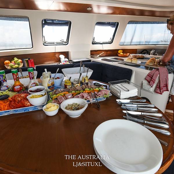 实用 登上了观景台,哇…… 时隔三年,依然被此美景震撼!没有养眼的水手,但美景依旧吸引,此行依然满足早上,太阳缓缓升起,我们被一股烤面包的香气吸引起床。勤劳的船长夫人已经忙乎起来为我们客人准备早餐了。别看只是在帆船上,但每天的一日四餐,一点都不含糊。