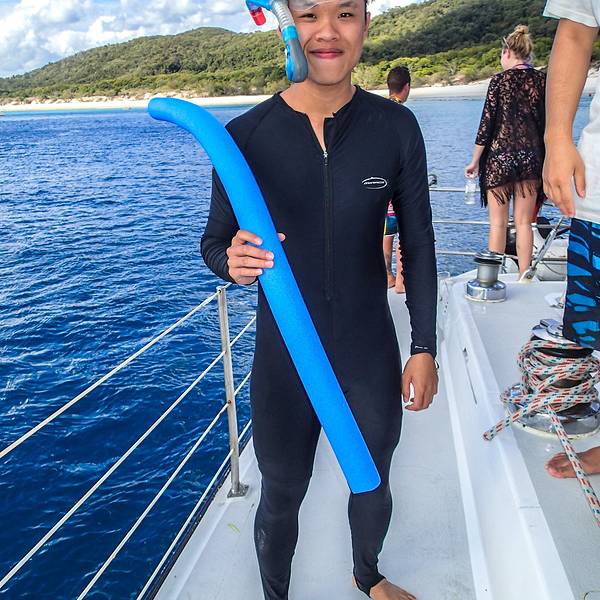 主要去海岛留下阴影晒太黑,好多老外上岛后在那 日光 浴,其实温度并不热,晒着太阳真的特别的舒服观景台拍完照,就沿着来的路回到船上吃午饭,途径这个 白沙 滩,走在 白沙 滩上沙子特别的软,很细腻。在 白沙 滩看见很多这样的枯树枝,造型特别的别致,各种样子的,拍照特别有感觉。今天出海,小立立一大早起...观景台拍完照,就沿着来的路回到船上吃午饭,途径这个 白沙 滩,走在 白沙 滩上沙子特别的软,很细腻。在 白沙 滩看见很多这样的枯树枝,造型特别的别致,各种样子的,拍照特别有感觉。今天出海,小立立一大早起床没来穿的是小短裤,可是早上实在太冷这个货又换成运动长裤、加上运动灰色上衣、黑鞋子在 白沙 滩拍的黑呼呼呼的。 他正在给我拍照,偷拍张,哈哈哈他自己都说像个小!黑!鸡!!!! 有木有!有木有!开始享受午餐~~中午的午饭就在船上解决,他们简单提供一些冷的食物,在船上看看海鸥、风景如此的美觉得吃什么都是一种享受。吃货,对待食物的精神都是格外认真的,他自己发明的新吃法 意大利 面配卷饼~~饭后来罐冰可乐,太爽~~~吃饭的时候一定要小心海鸥,我在 悉尼 就被这些人畜无害的小海鸥给攻击了~~~白沙 滩分南北 双沙 滩,船长带我们来到另一个沙滩,白天堂沙滩必须是跟团才能到,美到让人窒息,但是也绝对的暴晒。为了保护环境没有设置任何遮阳的地方,海水和沙一年365天不重样的沙圈变化着不一样的美!一直暴晒中~自由活动时候跟小立立在沙滩附近漫步,但是好晒,拍了几张照片后我就赶快躲回船上。主要去海岛留下阴影晒太黑,好多老外上岛后在那 日光 浴,其实温度并不热,晒着太阳真的特别的舒服。自由活动结束,返程啦~~~些许不舍,太美的沙滩也是我去过沙子质量最好的沙滩,光脚走在沙滩上根本不会感觉得脚痛,还很凉快。如果你冬天来澳洲旅游,一定不要错过热带的 昆士兰 ,它太美丽,太适合度假。返程的路上我们的小皮艇开的特别的快,加上太阳慢慢的下山天气开始微冷起来,穿上我们的外套。出海最好多带一件衣服船上座位下就有空间给你们放东西,一定要带外套,冷。