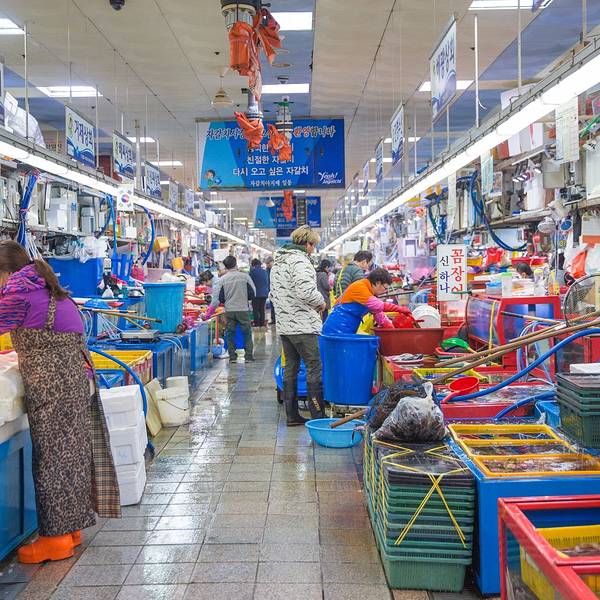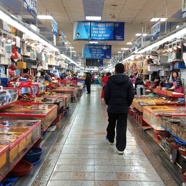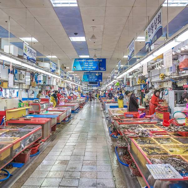 韩国最大的水产市场,可以在这品尝到新鲜味美的海鲜。