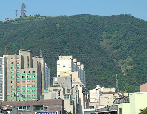 釜山海边的一座漂亮的山,可以看到漂亮的釜山海边,风景还不错