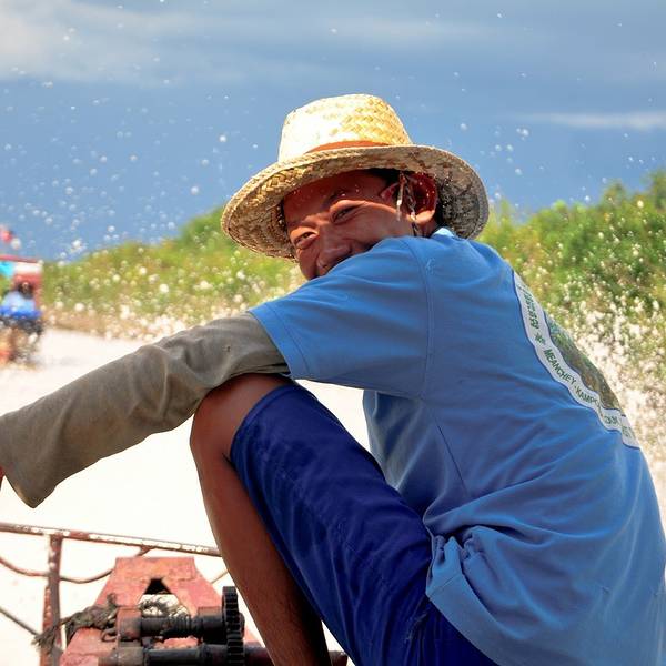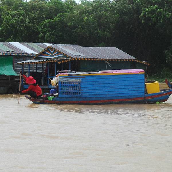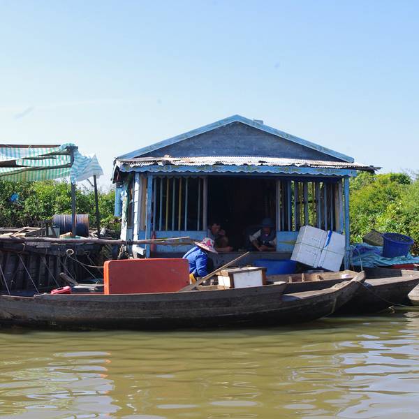 去浮村路上的景色也着实美不胜收。很多孩子就这样在船上长大。他的哥哥在船尾,看上去年纪也不大空邦鲁村庄的人们以水为生,吃住行均是围绕着水来进行着,日常起居的房屋都是建筑在水面上。由于空邦鲁季节变化的特殊性,雨季来临,洞里萨湖水位升高会将地面全部淹没,村民会把房子划到洞里萨湖中央居住;旱季...空邦鲁村庄的人们以水为生,吃住行均是围绕着水来进行着,日常起居的房屋都是建筑在水面上。由于空邦鲁季节变化的特殊性,雨季来临,洞里萨湖水位升高会将地面全部淹没,村民会把房子划到洞里萨湖中央居住;旱季到来的时候,地面裸露,就划回岸边水较浅的地方安营扎寨。房屋的建筑都是木质高脚屋,而且从房屋的颜色上还能区分出富人和穷人家,大户人家的房屋看上去要美观并艳丽很多。 展开