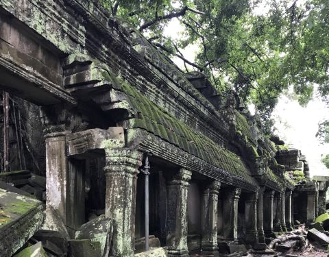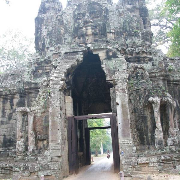 吴哥王城有几个胜利门,我到了其中的两个,这两个都保存得很好,门顶上的头像的表情没有完全被风化。墙上的雕刻还是清晰可见,那股神圣的魅力依然存在。幸好吴哥王城的景点实在太多了,我在这里给家人照了半天的...