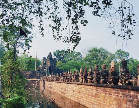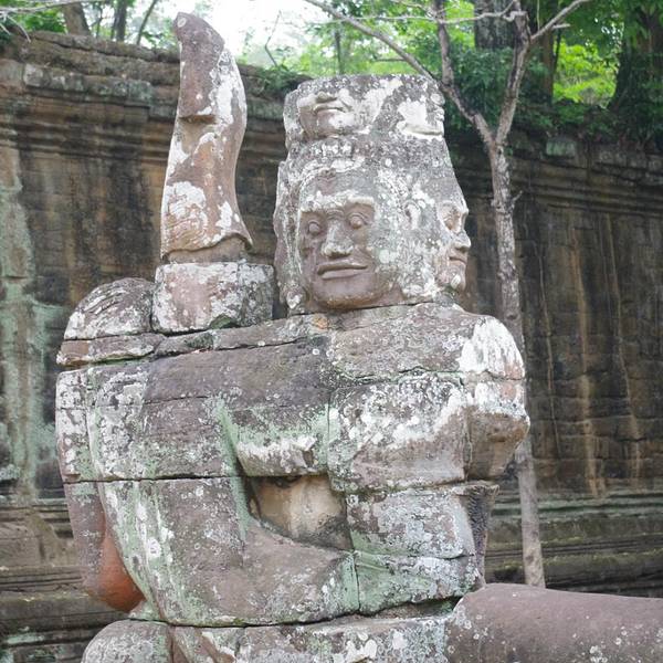 吴哥城的东北门,爬上胜利门可以看到两侧墙壁上的雕像。