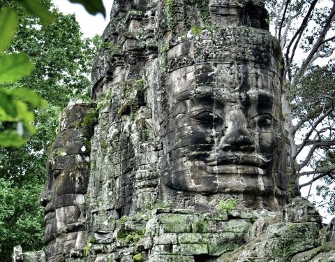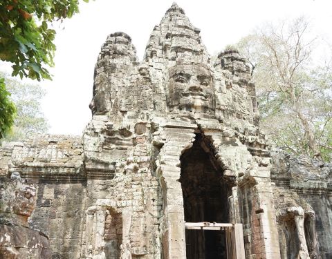 胜利门我觉得既是人文景观又属于自然景观吧,也是通往吴哥的最重要的通道了,其实这道门并不高大,但是上面也是有四面微笑佛的雕像。