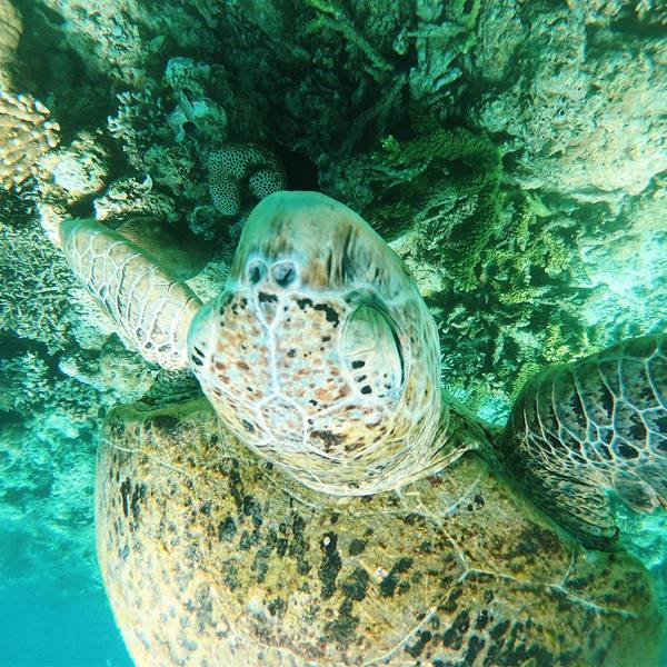 来回跑着换衣服,又浪费了不少时间。浮潜的时候碰到了大海龟,