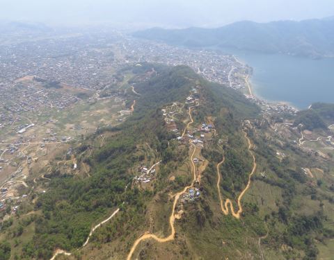 萨朗科位于博卡拉的西北方,海拔1592米,是远眺鱼尾峰和安娜普尔娜峰的较好观景点。很多人选择早起上山观日出,但由于雪山位于东面,所以其实日落时分能看到更美的景色。 1. “日照金山”的壮阔景观 在晴朗的天气下,连绵起伏的雪山群峰会被阳光染上一层金色,“日照金山”的壮阔景观令人惊叹。另外,这里也是很多滑翔伞项目的起飞地点,当你从高空中观赏鱼尾峰时,触手可及般的风景会令人兴奋不已,而秀美的费瓦湖也尽在眼下。 2. 前往萨朗科建议 看日出通常需要在清晨5点就出发,请在前一天预约好包车司机。从博卡拉湖滨区乘车到萨朗科的停车场,下车后还要步行约40分钟才能抵达山顶的观景台,那里有看雪山的较佳视角。不过,也不一定非得登上山顶看日出,从停车场沿山脊往上走的小路边也有很多不错的旅馆餐厅,几乎每家都有不错的观景平台,可以点上一杯热饮坐下来等待日出。 3. 体验萨朗科滑翔伞 如果想要体验滑翔伞,可以在湖滨区找到多家滑翔伞公司,他们会负责往返的接送。滑翔伞活动通常只在10月-次年4月的晴好天气展开。