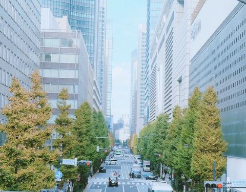 向二重桥说了再见,从皇居一带离开,沿着一块块刻有日本各个市县的地砖,我们来到了日比谷向二重桥说了再见,从皇居一带离开,沿着一块块刻有日本各个市县的地砖,我们来到了日比谷。日比谷的树木都很粗大,空气湿润,可以看到蘑菇。