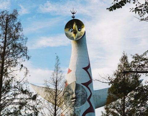 万博纪念公园是在1970年大阪世博会的旧址上改造的。公园很大,分为几个主要园区,有古典清幽的日本庭园,有花开四季、姹紫嫣红的自然文化园,还有民族学博物馆和民艺馆等,搭乘园内森林观光火车可以纵横其中。 公园中较为醒目的建筑莫过于自然文化园内的太阳塔了,也可以说太阳塔是园区概念的灵魂所在。 太阳塔是当年世博会的标志建筑,红白相间三角锥形状的主体上有一对张开的白色翅膀,寓意着人类永不停止的发展之路和顽强积极的生命力。造型别致的太阳塔有3个图腾式的“脸”,它们象征着过去、现在和未来。“黄金之面”正对公园入口,向着每位入园的游客而闪耀,预示了未来的美好。“黄金之面”正下方是混凝土制成的“太阳脸”,代表着现在,而塔身背后的黑太阳则象征着逝去的世界。