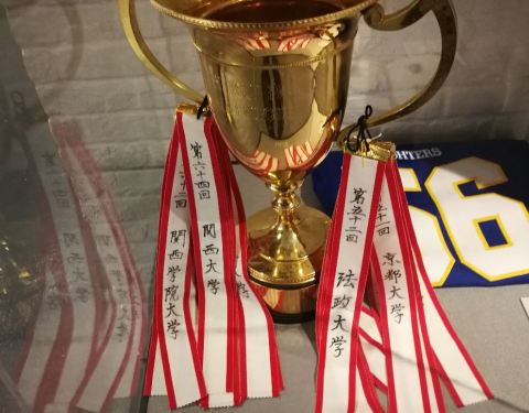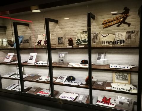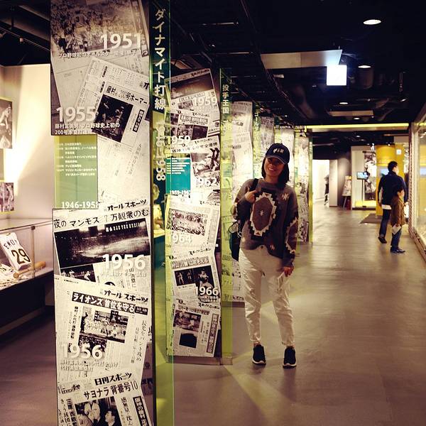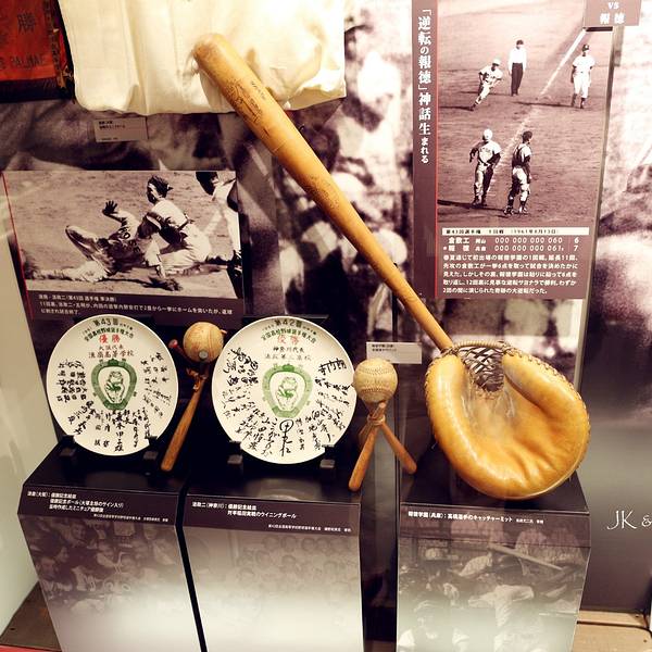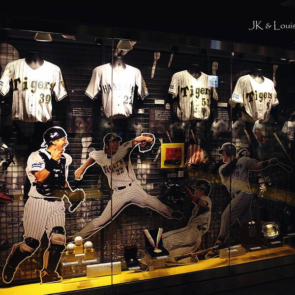 这些年级轻轻的小伙子们早已有了一种责任感与荣誉感,他们有着一份对队友百分百信任的团结,更有那永不言弃的韧性。也许正是日本人从小就喜爱棒球,才培养出这么个有责任心又团结的民族吧。在一片热烈而紧张的气氛中,第一场球结束了。下一场球十五分钟后开始,我们打算利用这段时间去甲子园博物馆看看。阪神甲子园是大阪老虎队的主场,博物馆内大部分展览出老虎队的球衣球棒和历届的名人。同时,甲子园也是高校棒球赛的赛场,博物馆里也展示了许多历届高校棒球冠军的奖杯,夺冠高校的球衣球棒等。