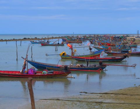 滩;恰文海滩南侧的Imperial饭店附近也有车站,从那里分别开往拉麦海滩或折回那·通港。去往春库拉木、攀牙等方向的出租车在那·通集市前发车,一