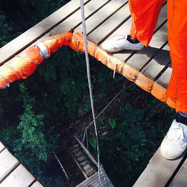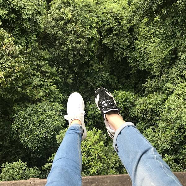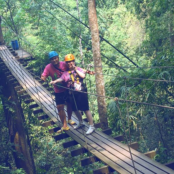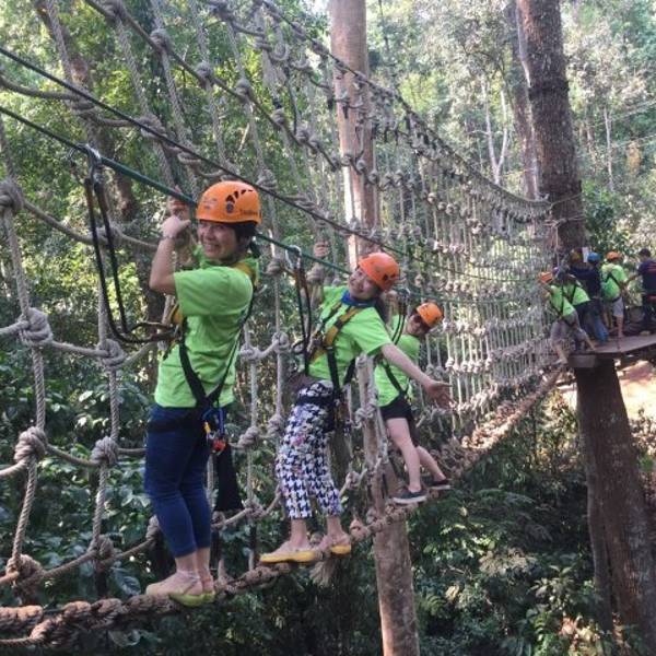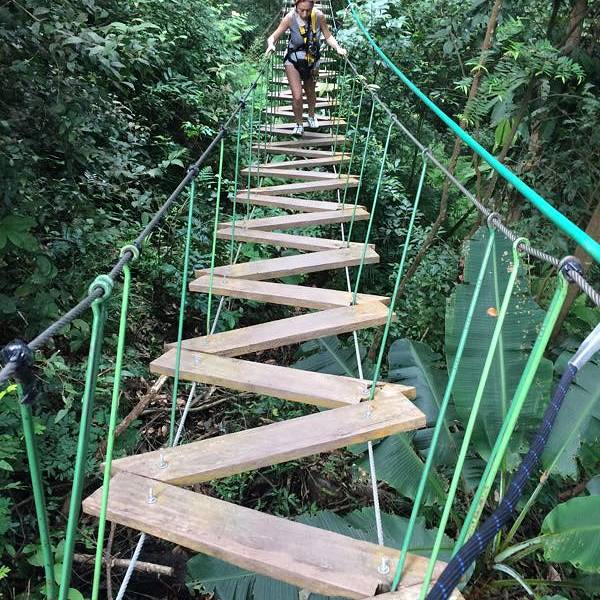 行走在2座高空吊桥和长达570米的丛林吊桥栈道