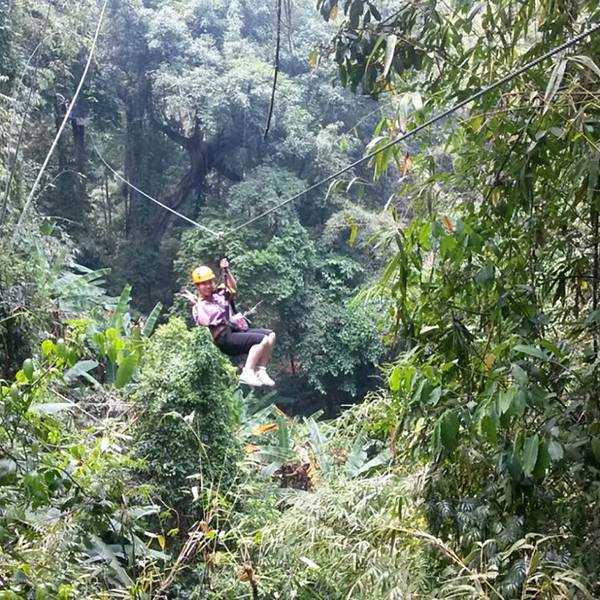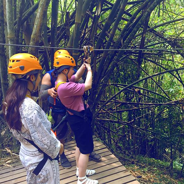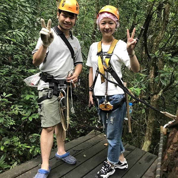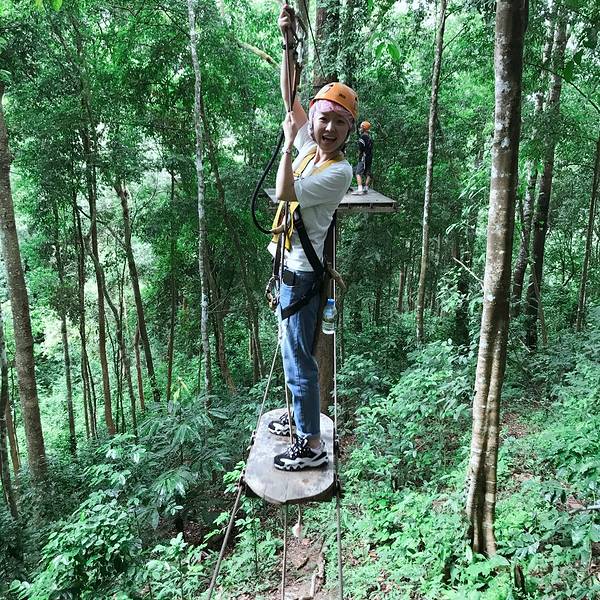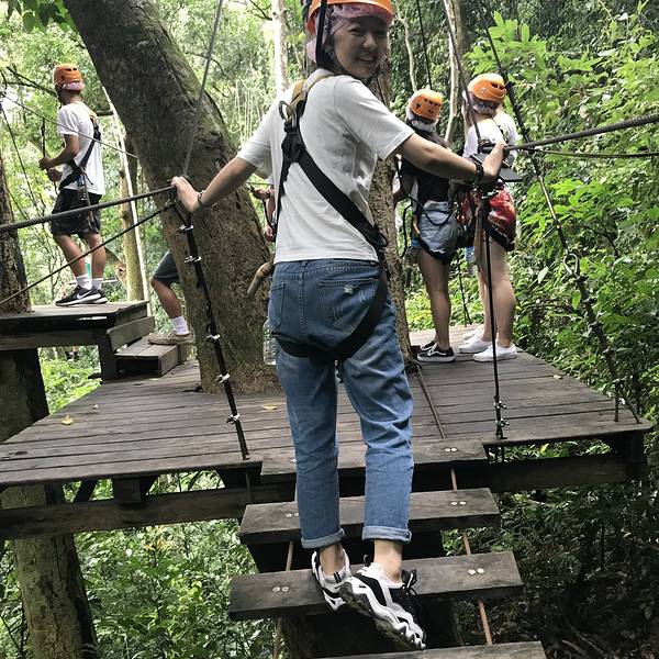 而我在一开始就掌握很好地掌握了刹车,把速度控制好了,因此是从头到尾都很享受这35站台的长线,有...跟着让我们坐上车,开到山中较高的位置,跟着走到了第一个点,工作人员就给我们讲注意事项,主要是如何刹车。安全措施做的很好,我笑言我们是一群被保护绳套着的猴子。一名女团友没玩的时候很害怕,开始几个平台...跟着让我们坐上车,开到山中较高的位置,跟着走到了第一个点,工作人员就给我们讲注意事项,主要是如何刹车。安全措施做的很好,我笑言我们是一群被保护绳套着的猴子。一名女团友没玩的时候很害怕,开始几个平台都得工作人员夹着她才敢玩,玩着玩着就能享受这种刺激了。而我在一开始就掌握很好地掌握了刹车,把速度控制好了,因此是从头到尾都很享受这35站台的长线,有溜索、速降、、蛛网、高空吊桥等。最后一跳简直跟蹦极有一拼,在几十米高往下跳。就这么久结束了,太快了,真是意犹未尽!还得提一下,工作人员都是非常风趣幽默的小伙子,还会些中文,为我们的旅程增添了不少幽默感。 展开