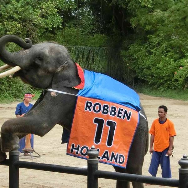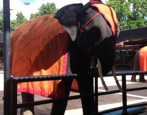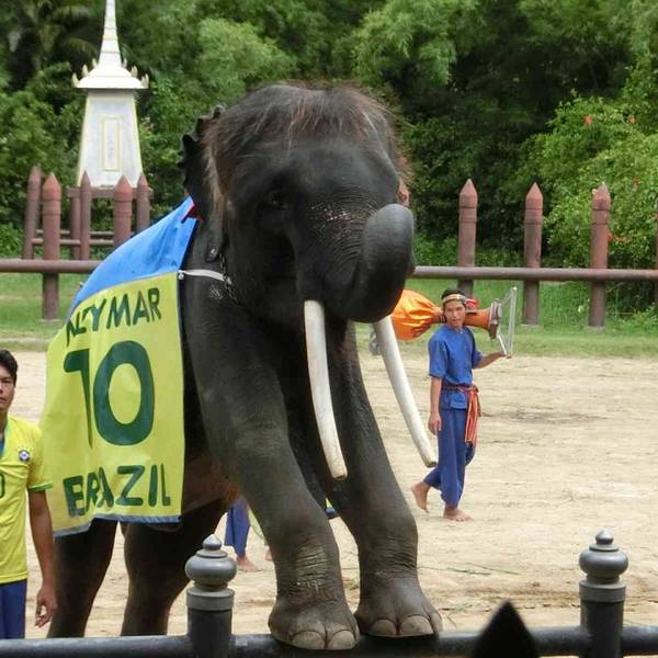 实用 【门票】建议购买套票2000元泰铢,可以有参观表演、骑大象等环节【特色】提前很久来到这里看和占位,只为了更近距离的来看这里的表演分时间段,大象表演在最后边,特别精彩有投篮、打保龄球、画画。最赞的还属于大象给人来按摩做SPA,都选老外上去,大象很可爱的在他们身上来回...【特色】提前很久来到这里看和占位,只为了更近距离的来看这里的表演分时间段,大象表演在最后边,特别精彩有投篮、打保龄球、画画。最赞的还属于大象给人来按摩做SPA,都选老外上去,大象很可爱的在他们身上来回踢。大象画画,有的像是大树也有像是自画像,一件衣服价格也不是很贵,而且都是很环保的材料制作的。卖香蕉的小朋友们一直在我们周围穿梭着,20泰铢一串要不要问我们,但是买的人不多,很多人都喜欢喝大象合影,特别是被它的鼻子卷起来在空中的感觉,特别棒!