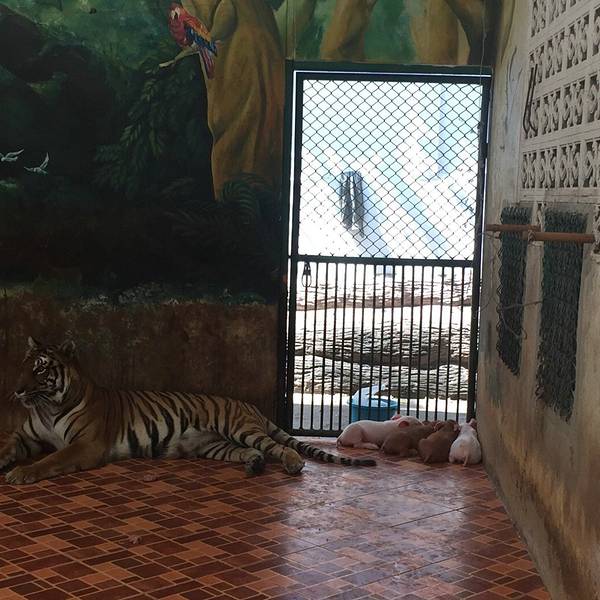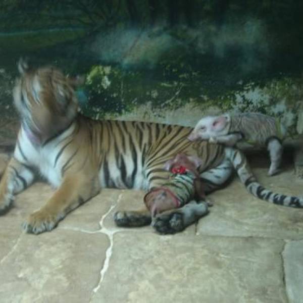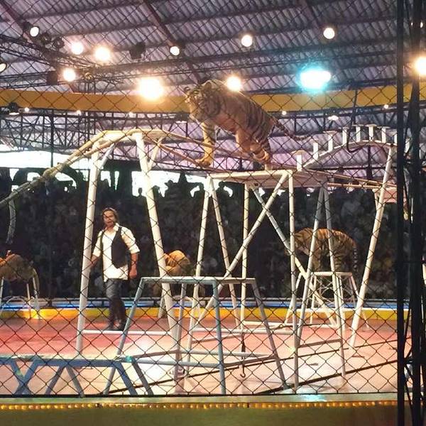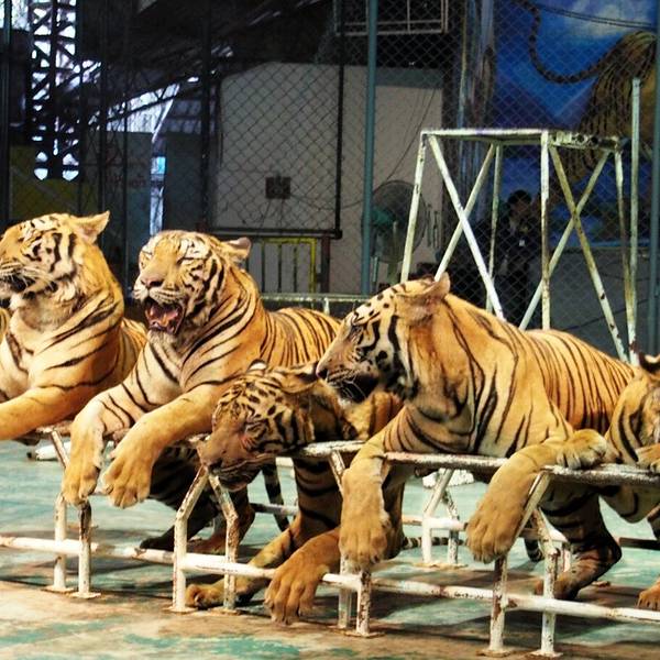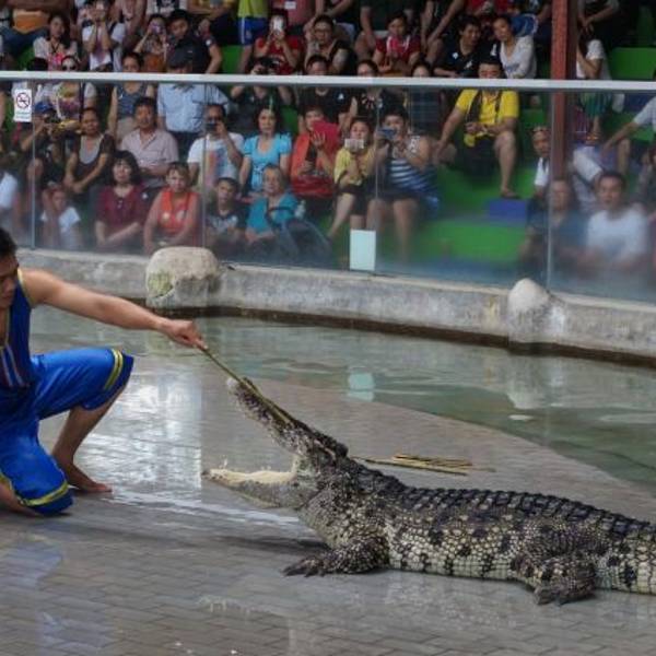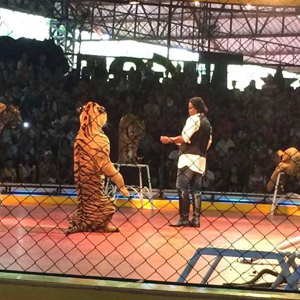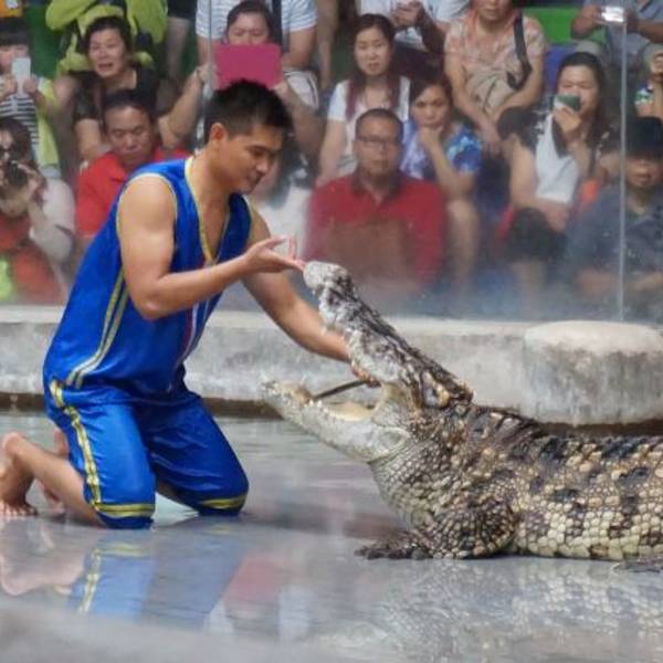 驯服的可与游客亲密相处的老虎有300余只,堪称人工养殖世界之最龙虎园是泰国最著名的热带园林之一,龙虎园位于芭堤雅附近的拉差市,龙虎园始建1989年,在至今二十几年的时间里,就开发养殖鳄鱼达10万余条;驯服的可与游客亲密相处的老虎有300余只,堪称人工养殖世界之最。园内...龙虎园是泰国最著名的热带园林之一,龙虎园位于芭堤雅附近的拉差市,龙虎园始建1989年,在至今二十几年的时间里,就开发养殖鳄鱼达10万余条;驯服的可与游客亲密相处的老虎有300余只,堪称人工养殖世界之最。园内可欣赏到老虎表演并与老虎拍照留念,和老虎拍照和给小老虎喂奶需要收费的,拍照200泰铢,喂奶500泰铢,有的时候小老虎喝饱了,就不能喂了;此外还有小猪赛跑和猪做算术,以及鳄鱼表演等,这两个都是免费的。鳄鱼表演值得一看,饲养员会把自己的头放进鳄鱼的嘴巴里,很惊险,如果需要和鳄鱼合影的游客,费用为200泰铢。龙虎园门票为350泰铢,购票后会得到一个编号牌,需要贴在身上。 展开
