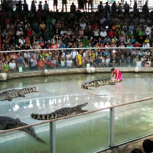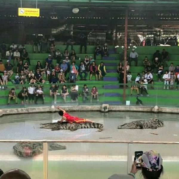 实用 芭提雅海滩是芭提雅之旅都会必去的地方,这里的海滩是免费开放的,人特别多,而且游乐项目也多,如...去龙虎园基本都是冲着看表演去的,龙虎园最多的动物就是老虎和鳄鱼了,所以这龙的表示就是鳄鱼。龙虎园是在去芭提雅的路上,从曼谷过去得大巴到了地方,可以跟司机师傅说停车,他就会停下来,里面设计得比较有泰...去龙虎园基本都是冲着看表演去的,龙虎园最多的动物就是老虎和鳄鱼了,所以这龙的表示就是鳄鱼。龙虎园是在去芭提雅的路上,从曼谷过去得大巴到了地方,可以跟司机师傅说停车,他就会停下来,里面设计得比较有泰国园林的感觉,植物很多,而且还有很多古树,这些树都很有意思,树根是长在树枝的,而且很高,都可以垂落在地面了。里面的设置也很卡哇伊,路很窄,到处都是摆放的卡通形象的模型,连垃圾桶也是卡通的样子。里面的动物很少,除了鳄鱼和老虎之外,还有大象、猴子、猪,每天都有表演,最值得一看的就是鳄鱼表演了,鳄鱼张开嘴巴的时候看着都害怕,看了表演之后就更加害怕了,里面的演员会把头放进鳄鱼的嘴巴里,实在惊险至极,工作人员不叫它闭嘴,它就会一直张开嘴巴,可能是长期训练的原因,里面的鳄鱼已经非常温顺了,表演结束后还可以免费跟鳄鱼合影,这是我第一次触摸鳄鱼,身上简直就是个降温神器,十分冰凉。里面是老虎表演也还可以,但是没有马戏团的好看。还有个表演觉得挺搞笑的,就是猪赛跑,搞得周边的小朋友在那非常兴奋。龙虎园所有的动物都可以亲密接触的,当然老虎只能接触到幼虎,但是也是很生猛的。还有个奇观就是,龙虎园的老虎竟然会跟猪关在一起,而且这老虎都不会碰猪,这是不是非常难以置信。龙虎园很大,里面的小卖铺也挺多的,价格比外面稍微贵一点点,但是还是能在接受的价位内。