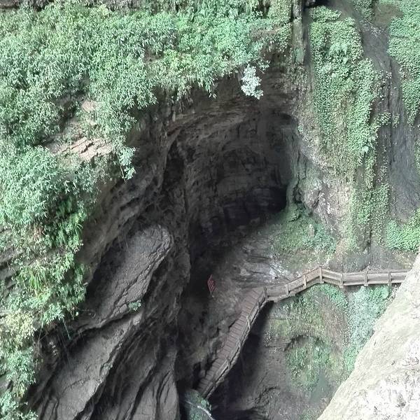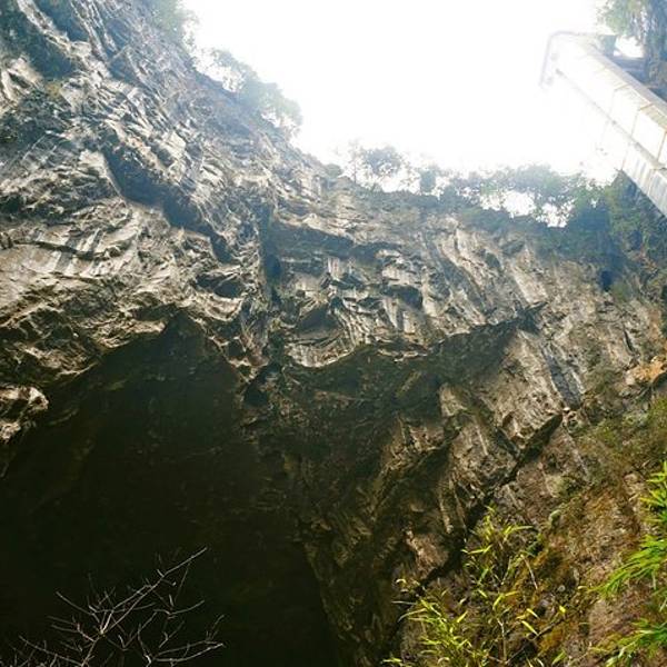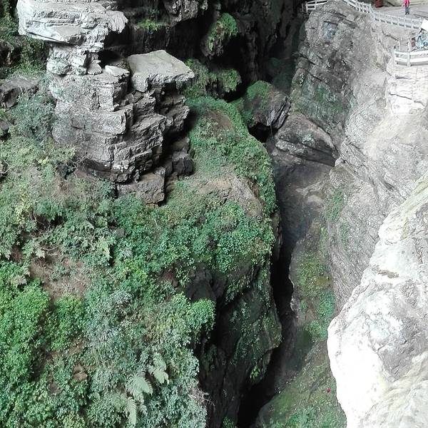 站在观景台上往下俯视,看到黑黝黝的深不见底的地缝,瘆得慌;