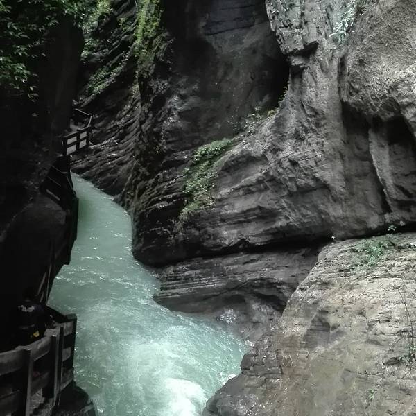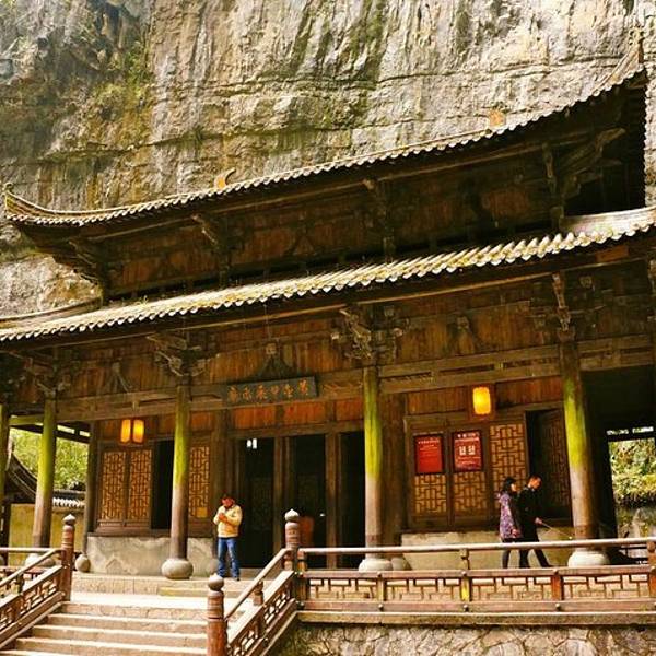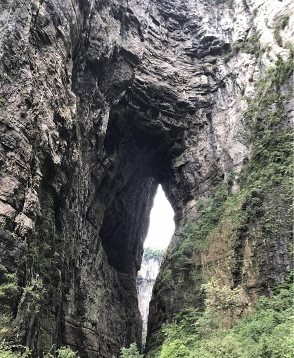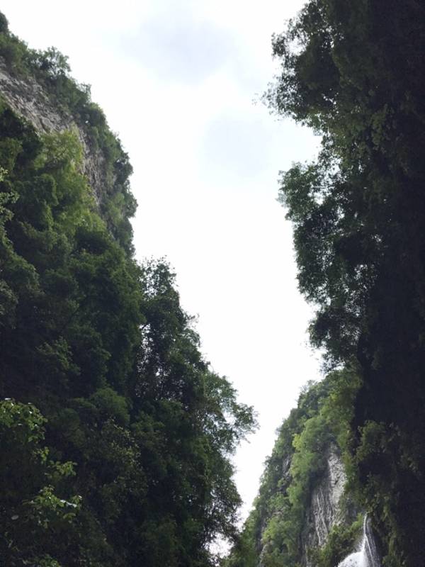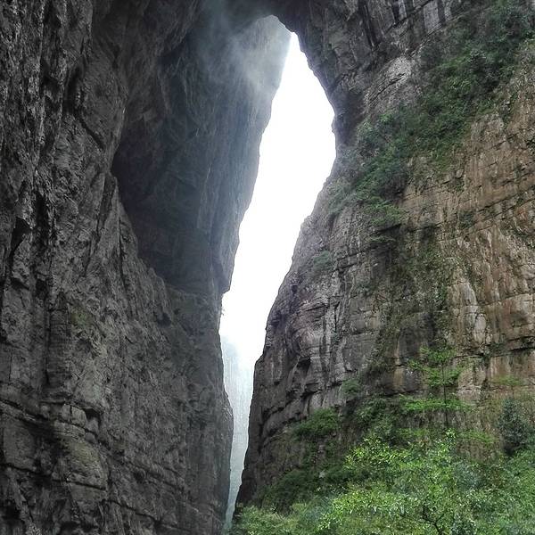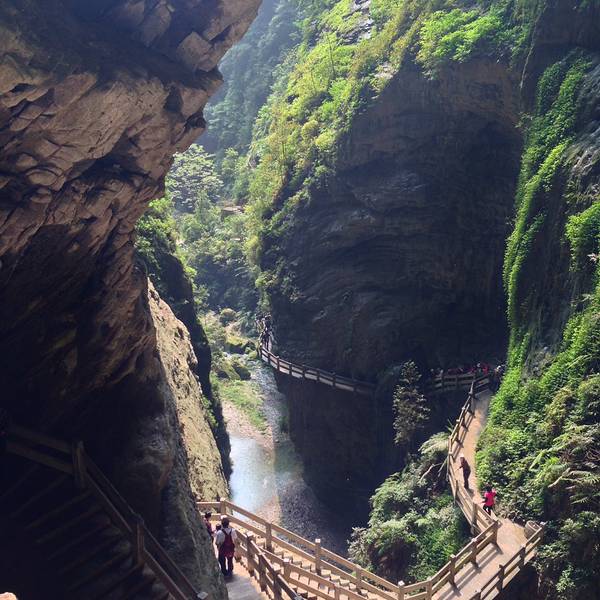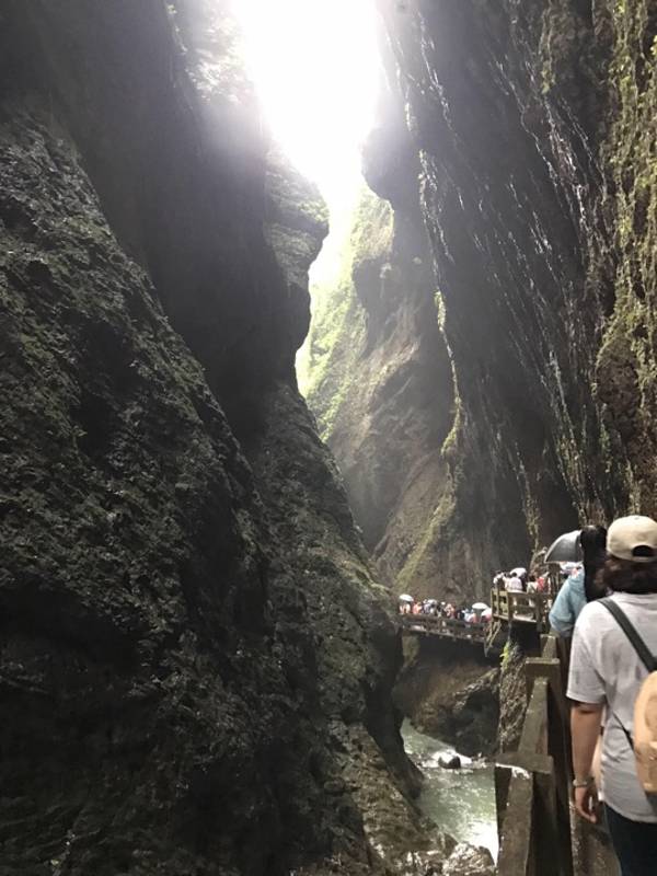 验票后顺着栈道行驶时就已经很有感觉了,因为有很长的步行道路是在山洞内行走,不时洞边开出一个“窗户”(缺口),没注意是天然的还是后期人工开凿的,可以探出去赏景。