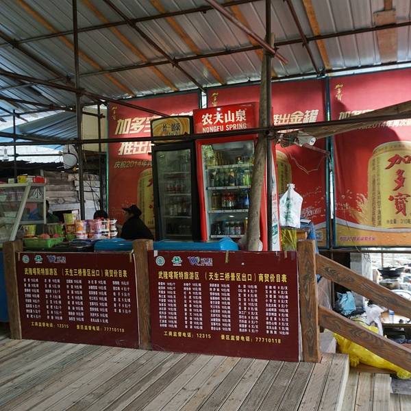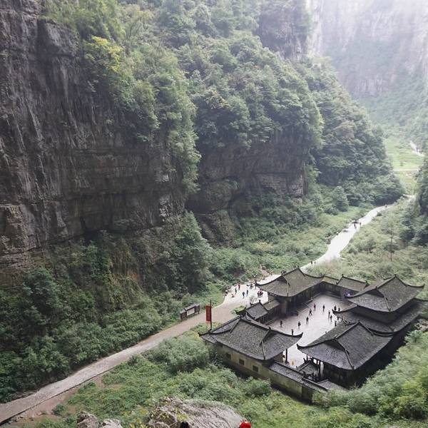 金骆驼 地缝要比天坑更震撼人,我个人感觉。下车以后一边是玻璃观景台售票的地方,买了2张票就进去了早上在楼下对面的小面馆来了碗面,这边面比较好吃。然后就去客运中心坐车去武隆了。到达武隆游客中心买票,我说我要买天坑和地缝的票,但是售票的说先买天坑的,时间够再买地缝的就行。买完就发现怎么比之前看的...早上在楼下对面的小面馆来了碗面,这边面比较好吃。然后就去客运中心坐车去武隆了。到达武隆游客中心买票,我说我要买天坑和地缝的票,但是售票的说先买天坑的,时间够再买地缝的就行。买完就发现怎么比之前看的网上的便宜了呢,也没多想,坐上开往天坑的大客出发。我觉得好像没开多久,20-30分钟吧。下车以后一边是玻璃观景台售票的地方,买了2张票就进去了。女儿倒是一点不害怕,我不敢往下看,腿软。妈妈也和我一样。不过呆一会就不害怕了。站在观景台上照的,下面那条小路就是下去以后走的观景台出来准备下去天坑的时候才知道现在电梯检修,不能坐,只能走下去。所以买的票里面没有电梯费。走下去还是挺浪费时间的,虽然不怎么累。下去的时候照的一路下去,路边有很大抬滑竿的,但是好像几乎没什么人坐。有很多人边走边唱,也有很多人对着山大喊。刚下过雨的山路虽然有点滑,但是空气格外清新,还有水滴滴下,大家心情都格外的好。下到天坑底部首先看见的是一个变形金刚,然后左右两边两条路。要先往天福官驿这边走,另外那边就直接出去了。到天福官驿的时候下雨了,所以里面人很多,都来这里避雨。从这里出去往另外一边一直走就好了,反正就一条路,不会迷路。从天坑往外走的路上天坑里也有照相的,收费是20,小照片免费。走出来就到了有中巴车的地方,拉上去到地缝大巴坐车的地方。到这的时候雨早已经不下了,所以我们决定走上去,不坐中转的车了。走出来其实真没多久,女儿刚说有点累了就到了,都坐车感觉就没意思了。走上来就看见买地缝票的地方,还有去地缝的大巴。这还有卖吃的的。