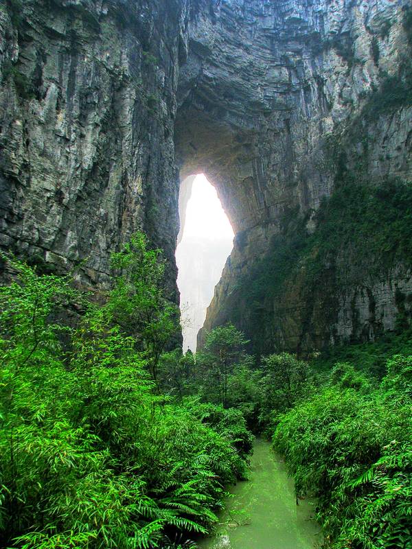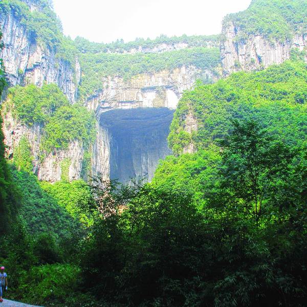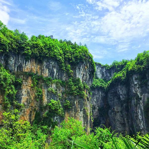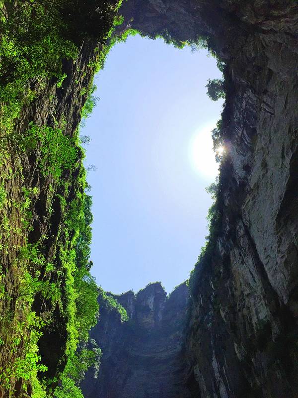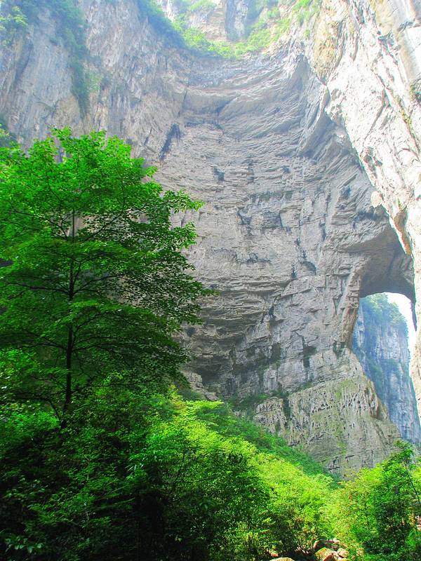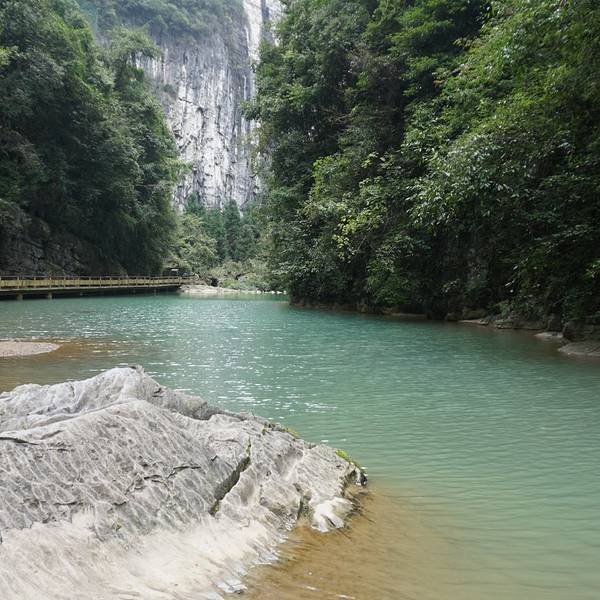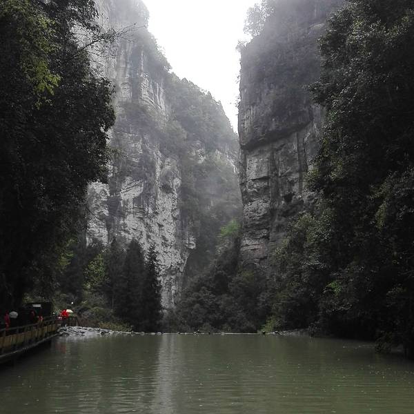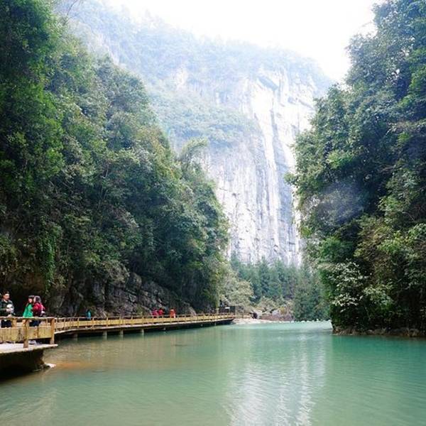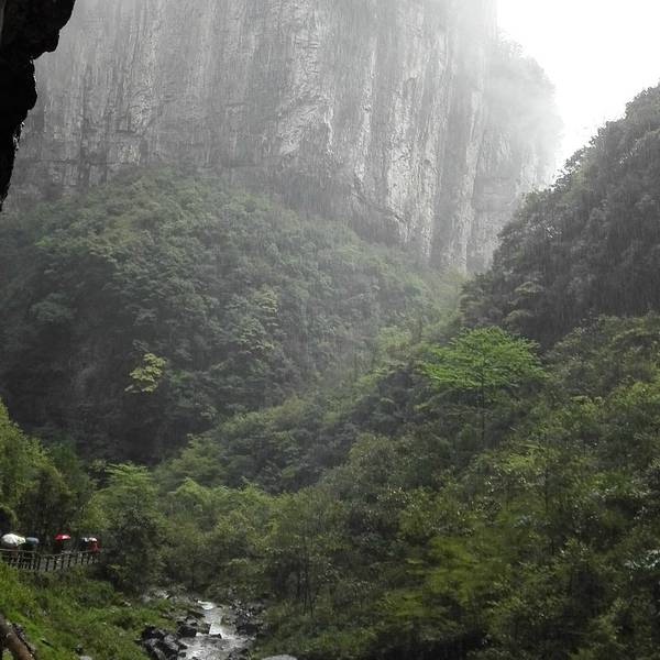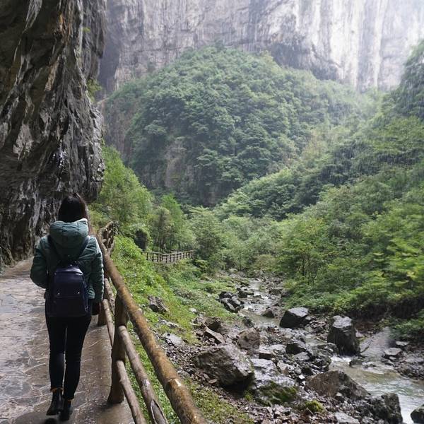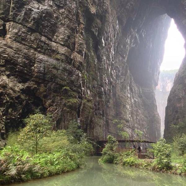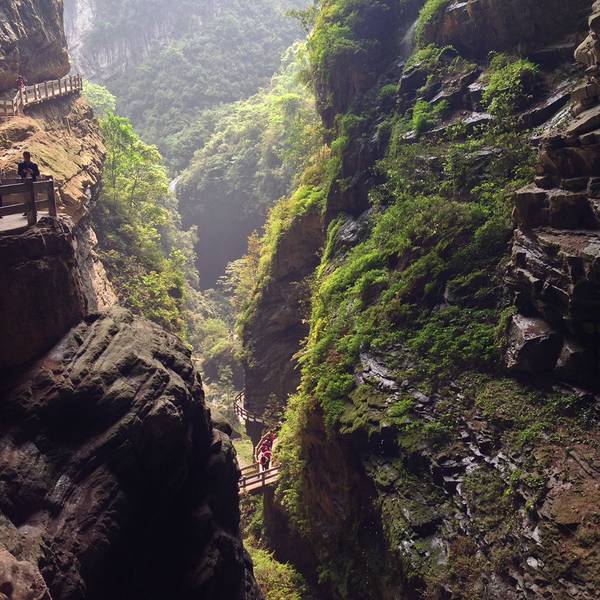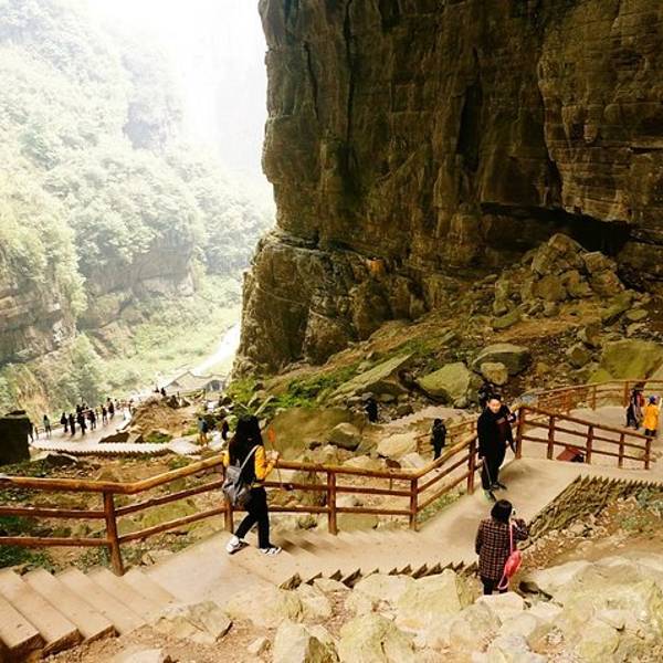 到达景区会先乘坐一部很高很高的电梯到达天坑坑底开启奇妙的旅程。因为景区内单方向游览,不走回头路,所以不用担心会走丢。这里是拍摄《满城尽带黄金甲》和《变形金刚4》的外景地,景色自然差不了,空气清新湿润,但最好选择淡季前往,旅行团也会少一些,才更能领略到其中的美妙。