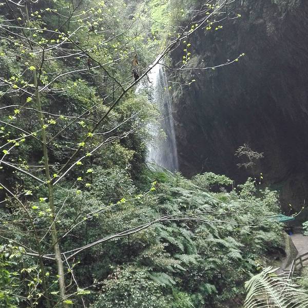 峡谷里光线不强,我付在栏杆处屏住呼吸,相用慢门来表现垂落的瀑布: